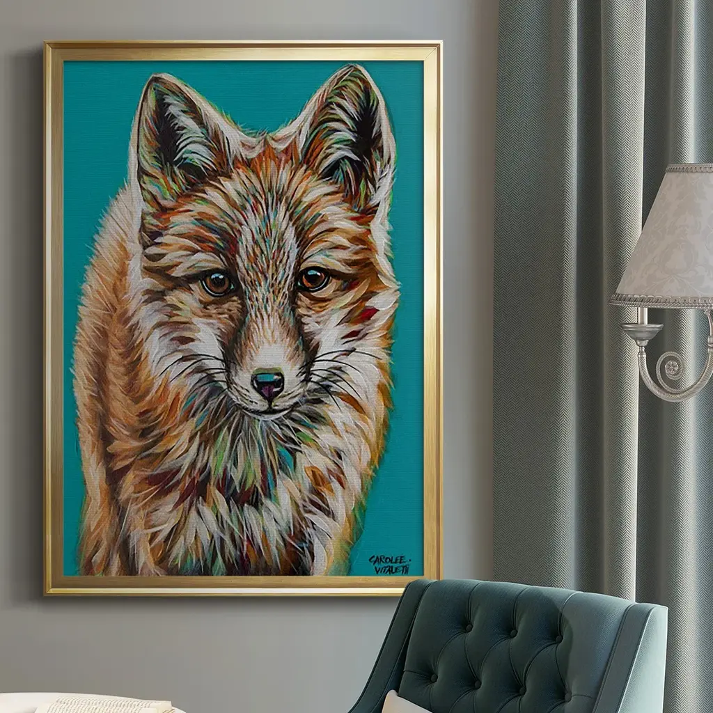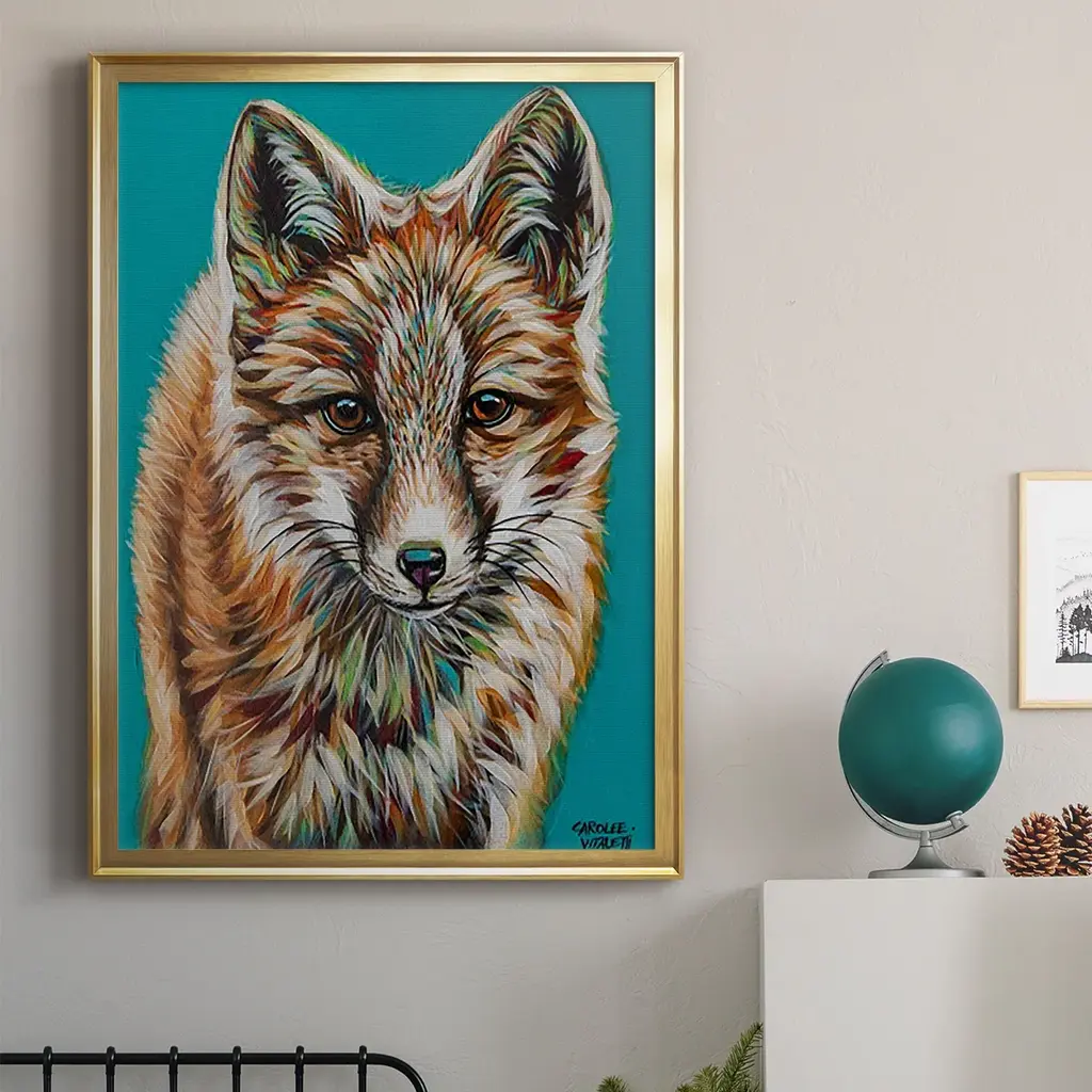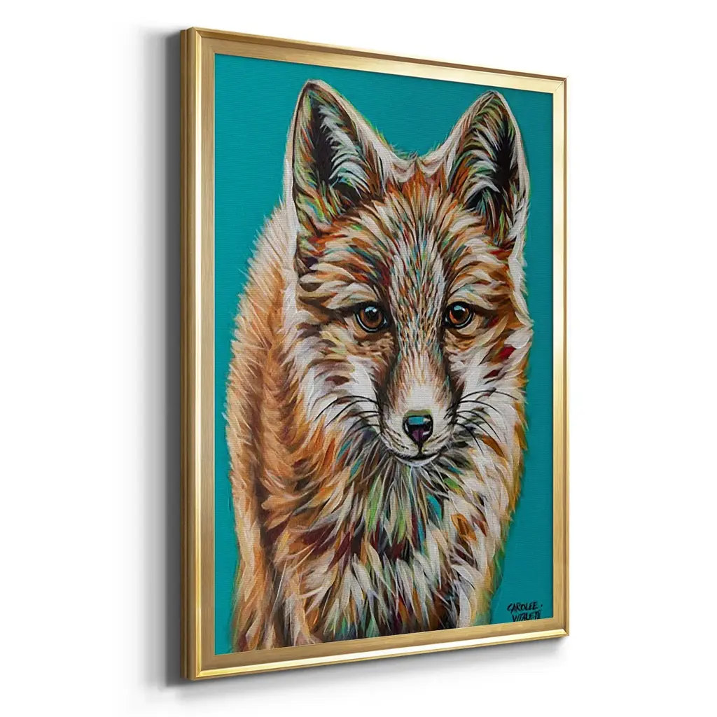 Teal Fox Premium Framed Print - Ready to Hang A Premium Framed Print created to last. Framed in distressed wood and available in an array of sizes and colors Featuring a beveled a solid wood stretcher bar, each piece comes ready to hand 4 SIZES AVAILABLE 30.5''X42.5'' - Overall Size 26.5'X36.5'' - Overall Size 22.5''x30.5'' - Overall Size 18.5''x24.5'' - Overall Size Each piece is made to order. Each piece comes with hanging hardware. Made in the USA Ready to Hang