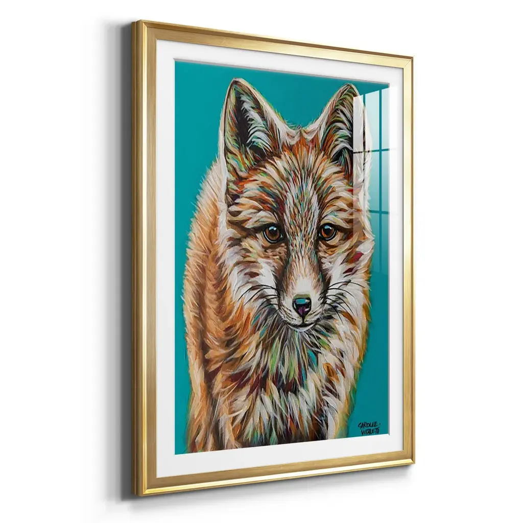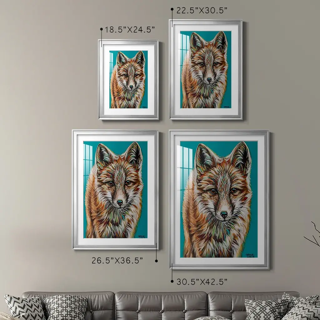 Teal Fox Premium Framed Print - Ready to Hang A Premium Framed Print created to last. Framed in distressed wood and available in an array of sizes and colors Featuring a beveled a solid wood stretcher bar, each piece comes ready to hand 4 SIZES AVAILABLE 30.5''X42.5'' - Overall Size 26.5'X36.5'' - Overall Size 22.5''x30.5'' - Overall Size 18.5''x24.5'' - Overall Size Each piece is made to order. Each piece comes with hanging hardware. Made in the USA Ready to Hang Giclee Paper Print Acrylic Glass Beveled Matt Board