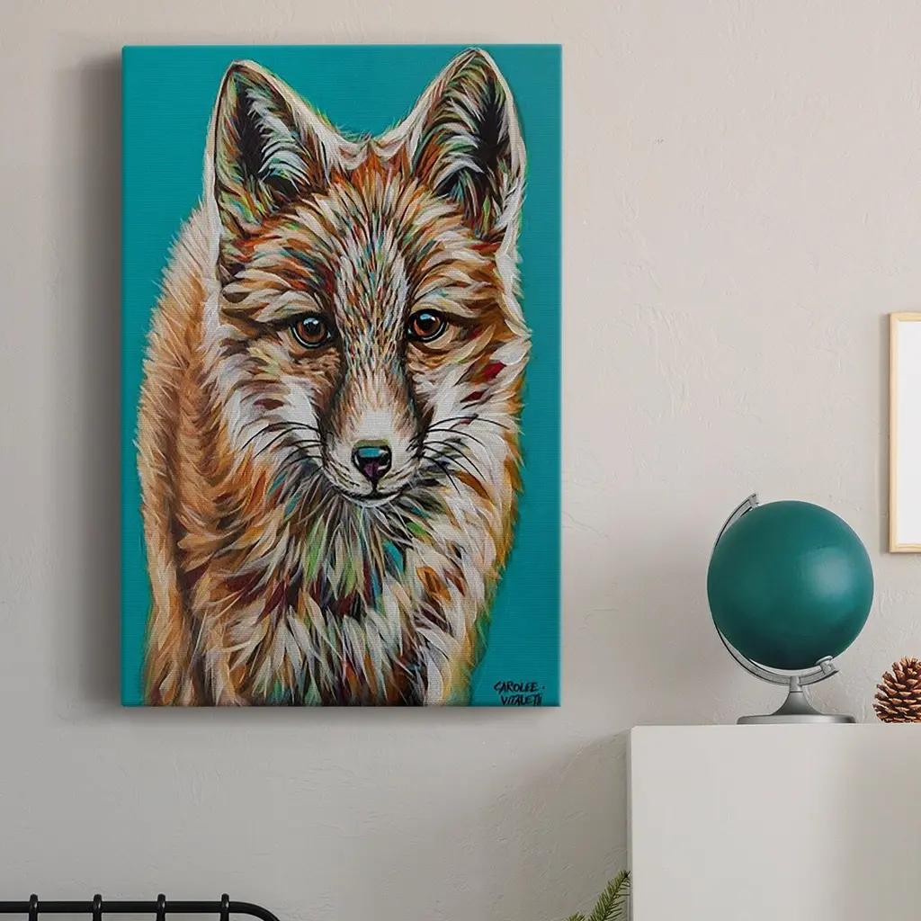 Teal Fox Premium Gallery Wrapped Canvas - Ready to Hang A premium hand stretched gallery wrapped canvas print created to last. Featuring a beveled a solid wood stretcher bar, each piece comes ready to hand 6 SIZES AVAILABLE 8''X12'' - Overall Size 12''X18'' - Overall Size 18''X27'' - Overall Size 24''x36'' - Overall Size 32''x48'' - Overall Size 40''x60'' - Overall Size Each piece is made to order. Built to Last Each piece comes ready to hang Solid wood stretcher Fade and Water resistant Made domestically
