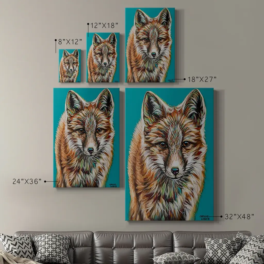 Teal Fox Premium Gallery Wrapped Canvas - Ready to Hang A premium hand stretched gallery wrapped canvas print created to last. Featuring a beveled a solid wood stretcher bar, each piece comes ready to hand 6 SIZES AVAILABLE 8''X12'' - Overall Size 12''X18'' - Overall Size 18''X27'' - Overall Size 24''x36'' - Overall Size 32''x48'' - Overall Size 40''x60'' - Overall Size Each piece is made to order. Built to Last Each piece comes ready to hang Solid wood stretcher Fade and Water resistant Made domestically
