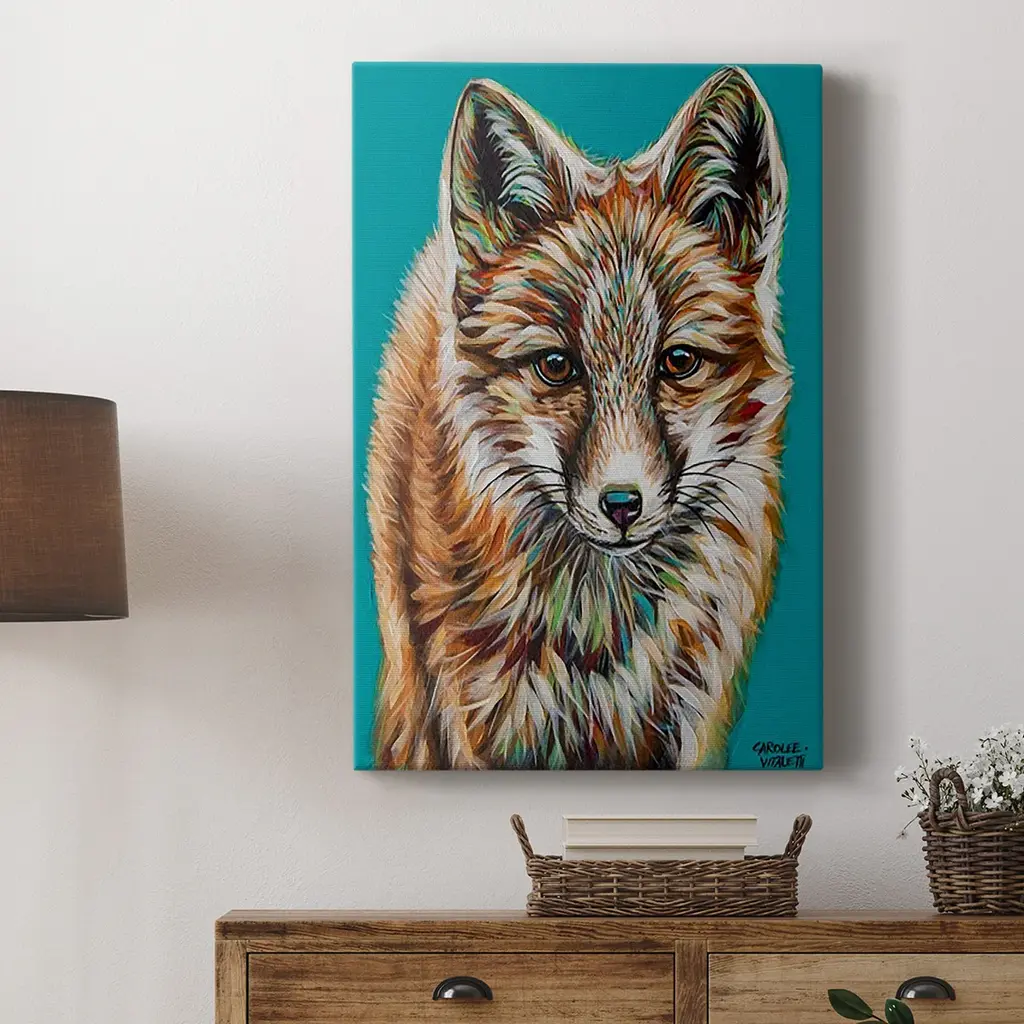 Teal Fox Premium Gallery Wrapped Canvas - Ready to Hang A premium hand stretched gallery wrapped canvas print created to last. Featuring a beveled a solid wood stretcher bar, each piece comes ready to hand 6 SIZES AVAILABLE 8''X12'' - Overall Size 12''X18'' - Overall Size 18''X27'' - Overall Size 24''x36'' - Overall Size 32''x48'' - Overall Size 40''x60'' - Overall Size Each piece is made to order. Built to Last Each piece comes ready to hang Solid wood stretcher Fade and Water resistant Made domestically
