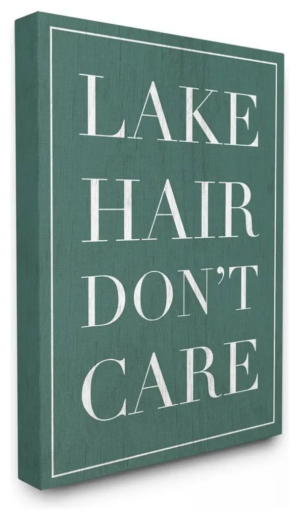 Teal Lake Hair Don't Care Typography Oversized Framed Giclee Art, 16"x20"