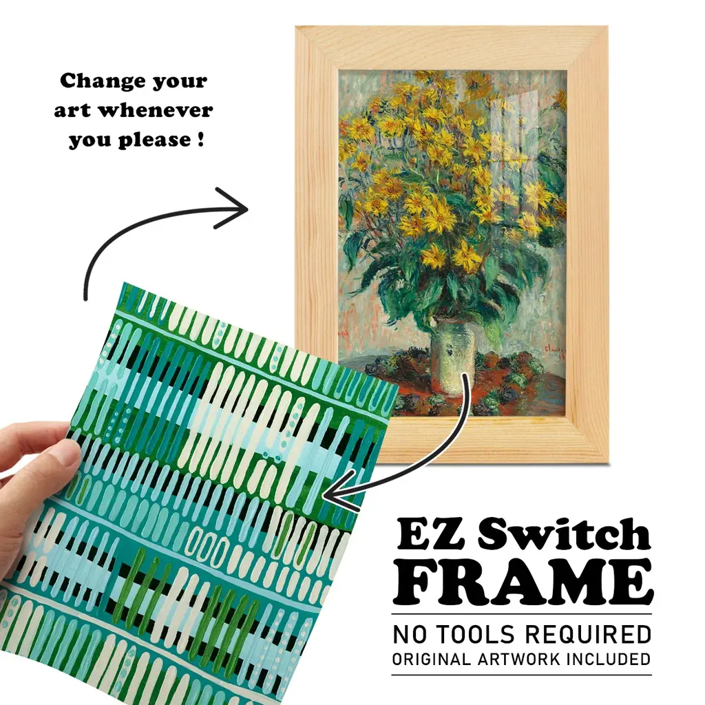 Teal Pattern I -EZ SWITCH Framed Print w/glass-Cherry Red A delightful, framed print. Featuring a solid wood frame with real wood glass. This premium print is giclee quality. In addition, every frame features a removable back and table top stand. This allows you to change your art in the future or to just stand the art on a table for a new look. We are sure you'll enjoy our new series of EZ SWITCH Framed Art. Solid Wood Frame Real Glass Removable / Replaceable Art Built in Tabletop Stand Sizes range from 4x6 up to 12x15 - buy just one or pair them up as sets as you see fit.