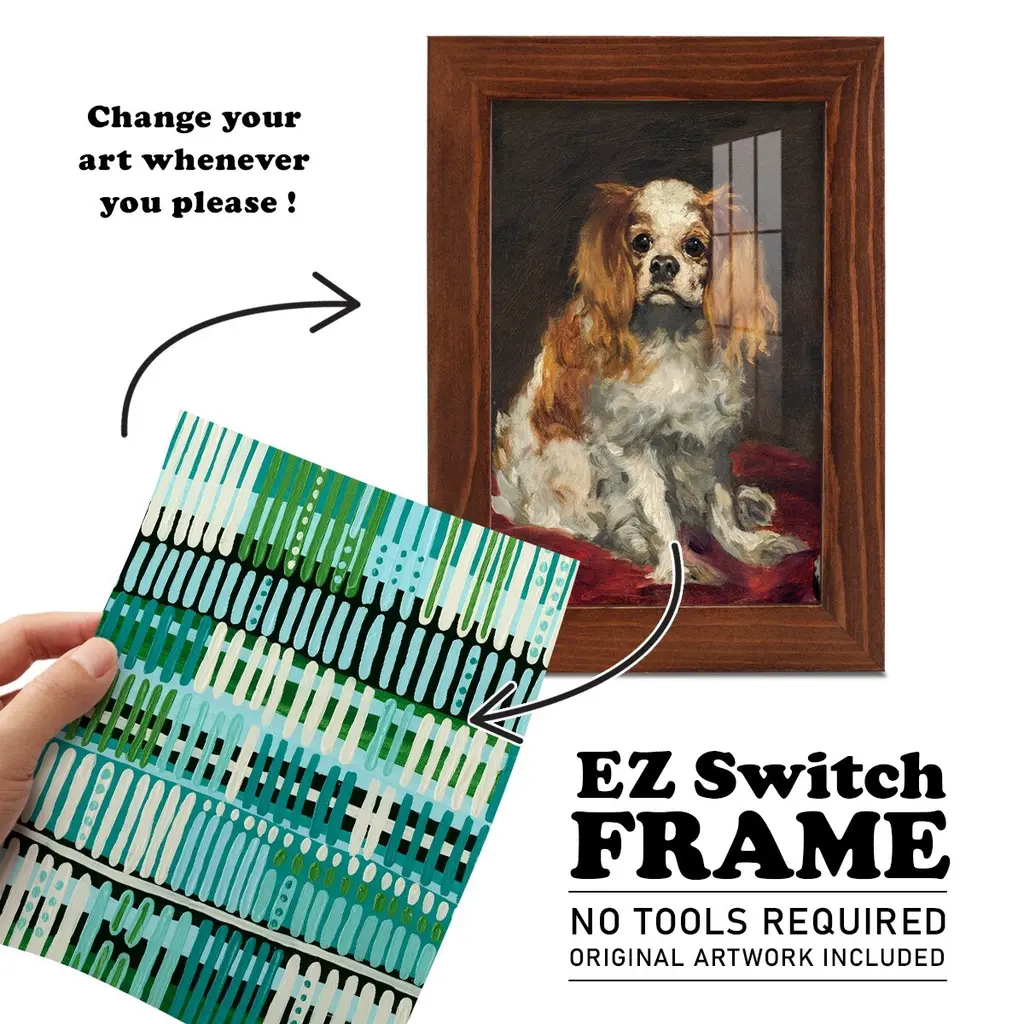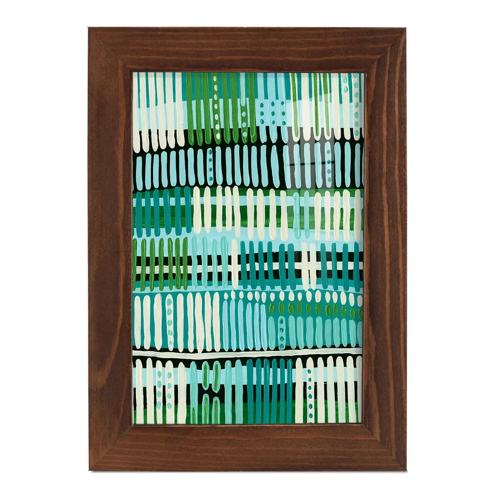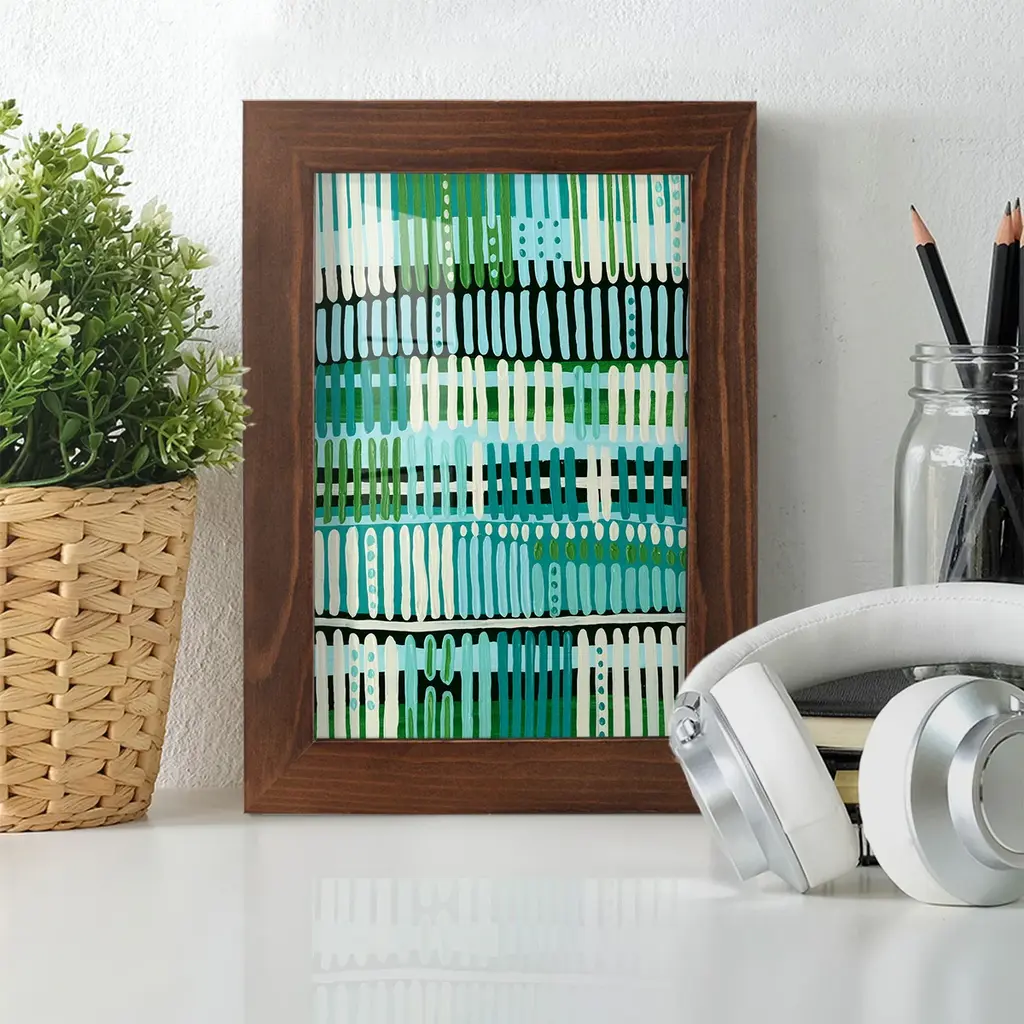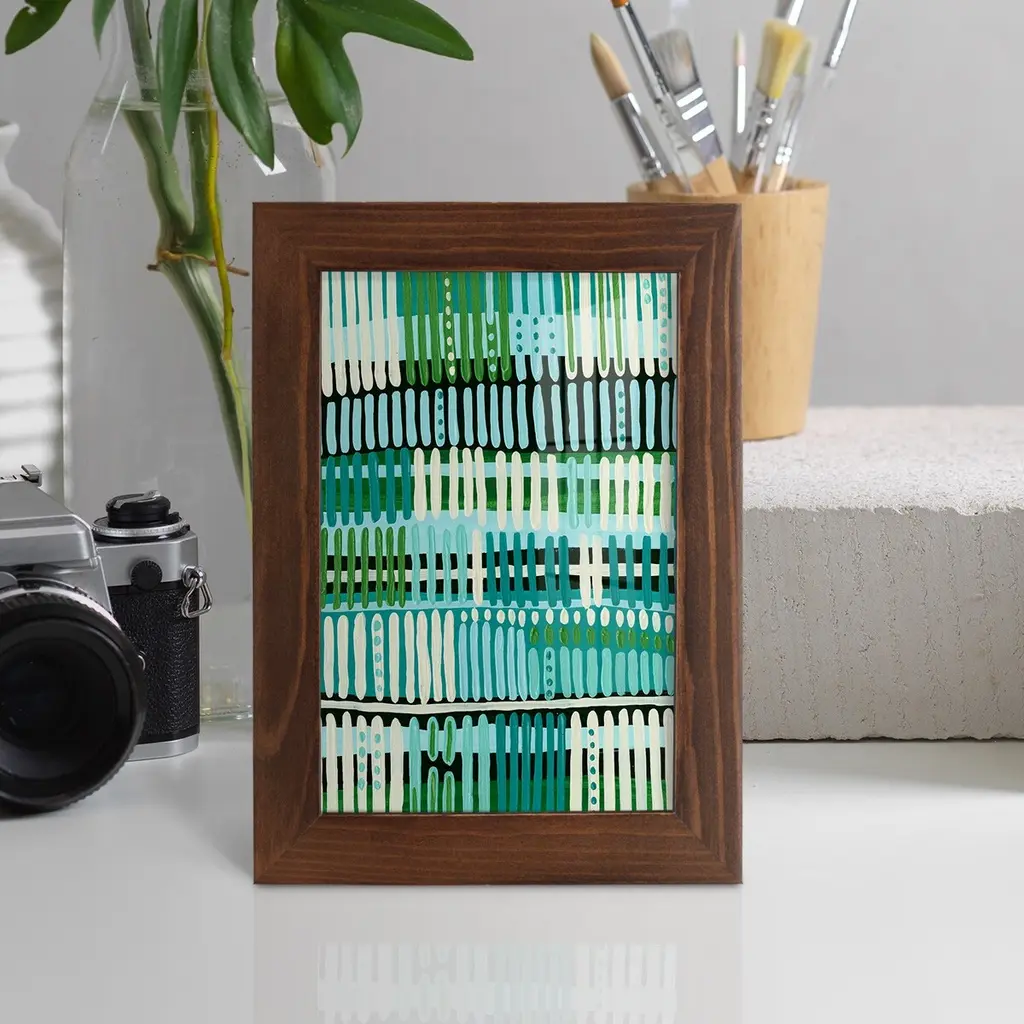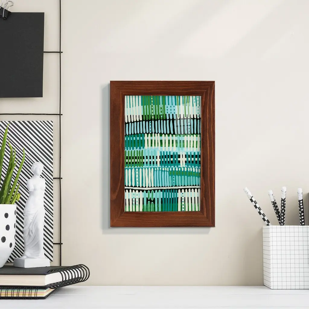 Teal Pattern II -EZ SWITCH Framed Print w/glass-Cherry Red A delightful, framed print. Featuring a solid wood frame with real wood glass. This premium print is giclee quality. In addition, every frame features a removable back and table top stand. This allows you to change your art in the future or to just stand the art on a table for a new look. We are sure you'll enjoy our new series of EZ SWITCH Framed Art. Solid Wood Frame Real Glass Removable / Replaceable Art Built in Tabletop Stand Sizes range from 4x6 up to 12x15 - buy just one or pair them up as sets as you see fit.