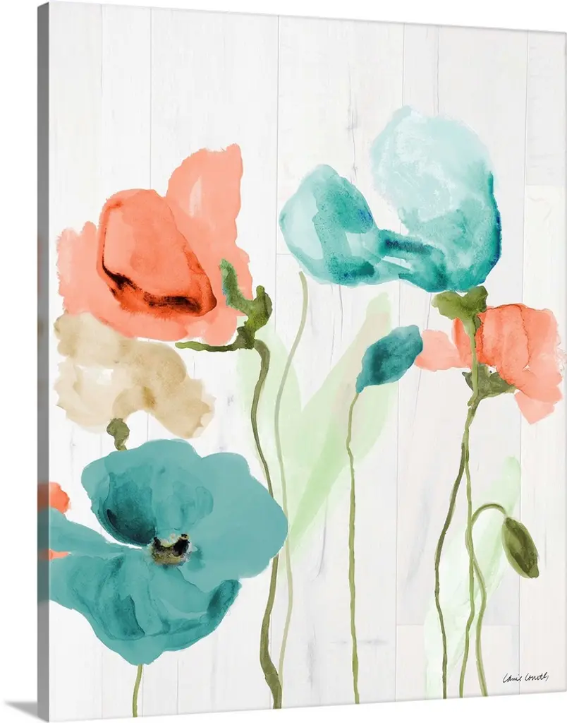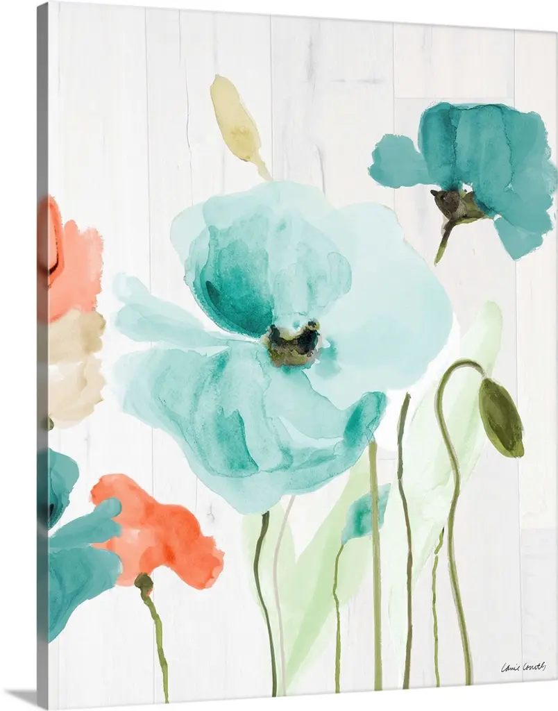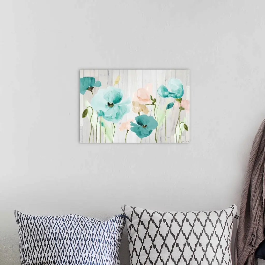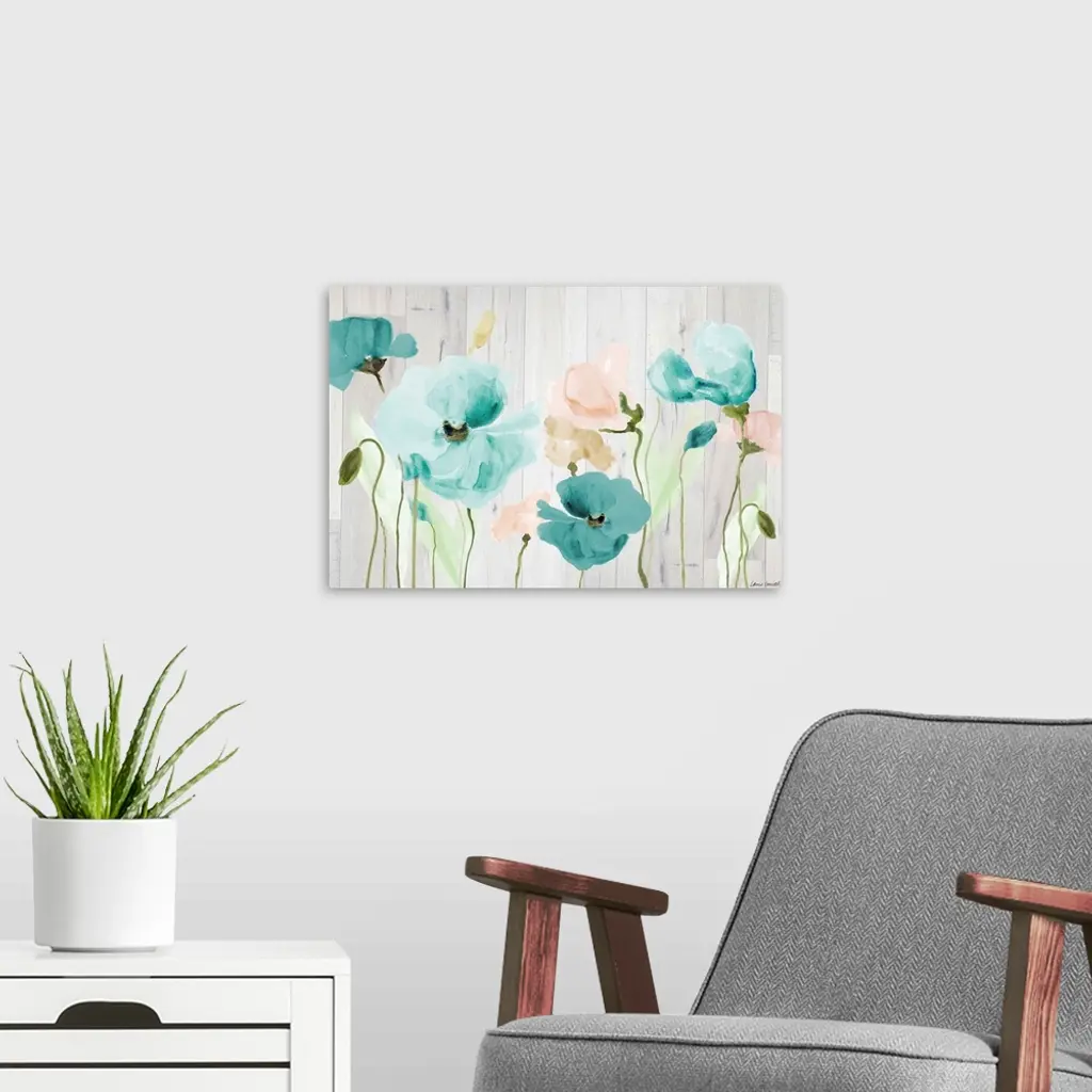 Teal Poppies On Wood