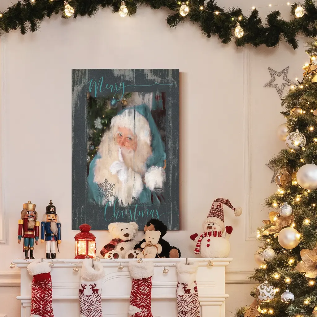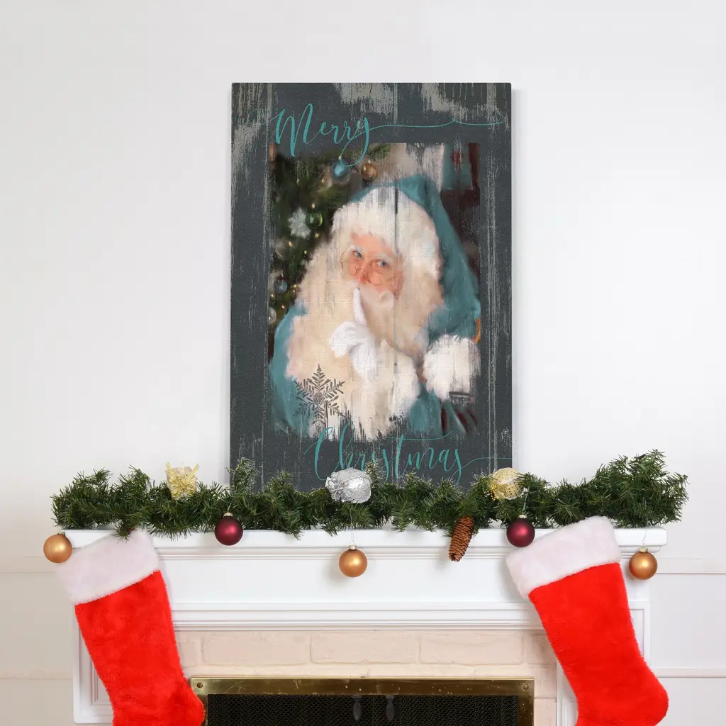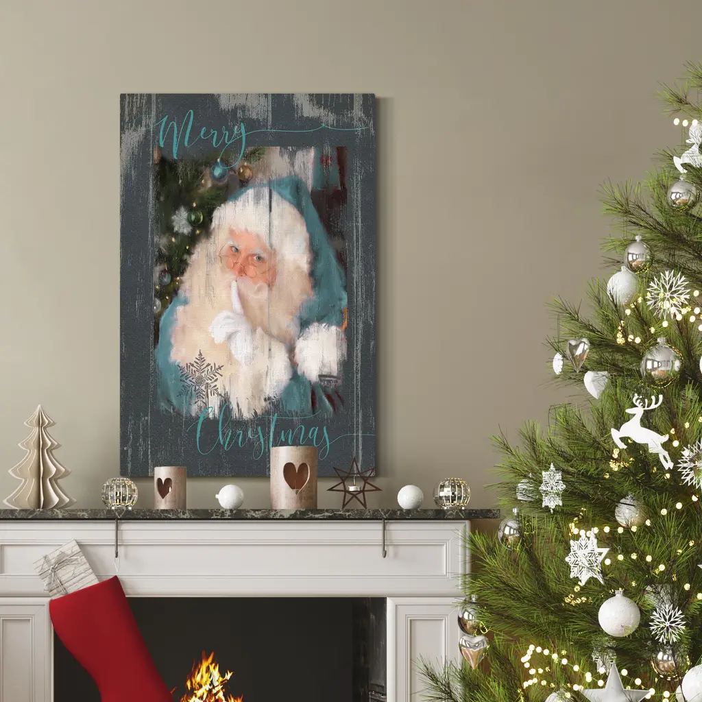 Teal Santa-Premium Gallery Wrapped Canvas - Ready to Hang A premium hand stretched gallery wrapped canvas print created to last. Featuring a beveled a solid wood stretcher bar, each piece comes ready to hand 5 SIZES AVAILABLE 8''X12'' - Overall Size 16''x20'' - Overall Size 18''x27'' - Overall Size 24''x36'' - Overall Size 32''x48'' - Overall Size Each piece is made to order. Built to Last Each piece comes ready to hang Solid wood stretcher Fade and Water resistant Made domestically
