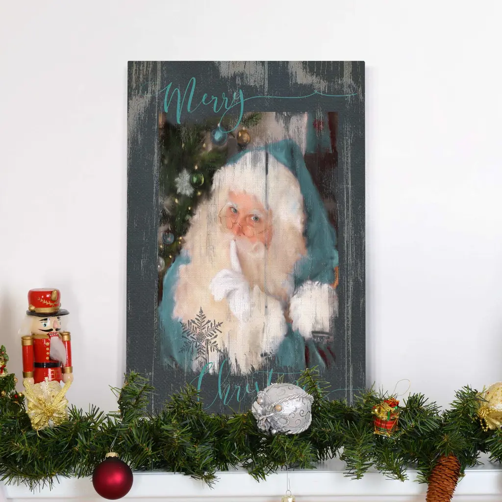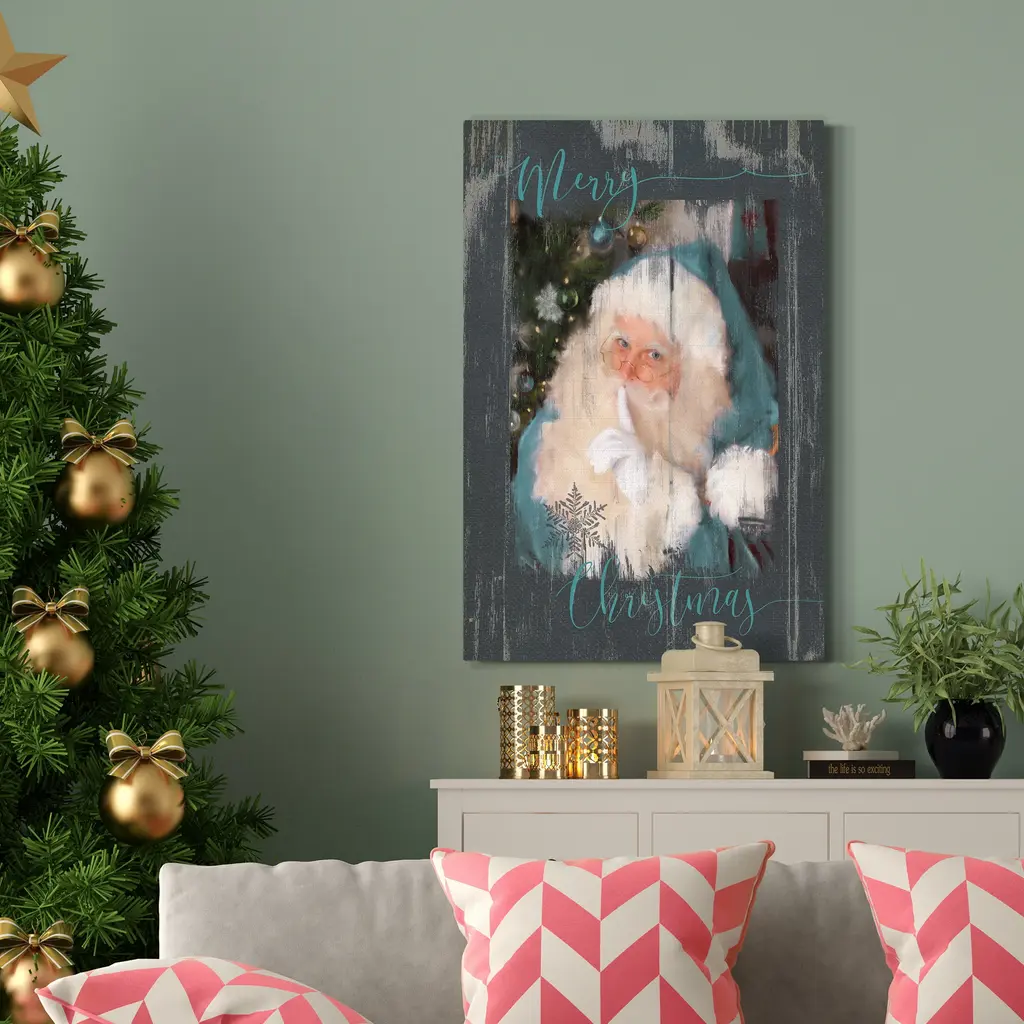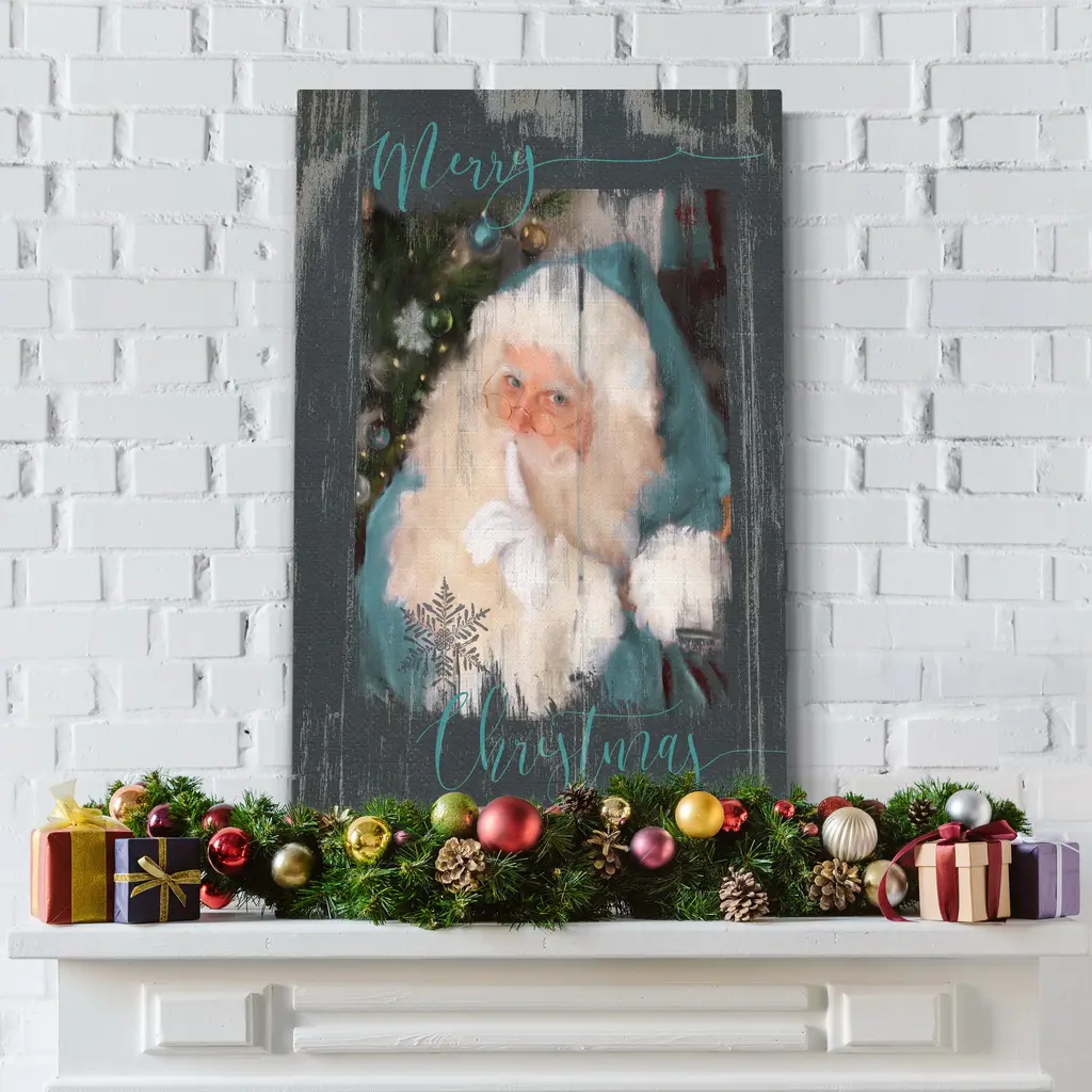 Teal Santa-Premium Gallery Wrapped Canvas - Ready to Hang A premium hand stretched gallery wrapped canvas print created to last. Featuring a beveled a solid wood stretcher bar, each piece comes ready to hand 5 SIZES AVAILABLE 8''X12'' - Overall Size 16''x20'' - Overall Size 18''x27'' - Overall Size 24''x36'' - Overall Size 32''x48'' - Overall Size Each piece is made to order. Built to Last Each piece comes ready to hang Solid wood stretcher Fade and Water resistant Made domestically