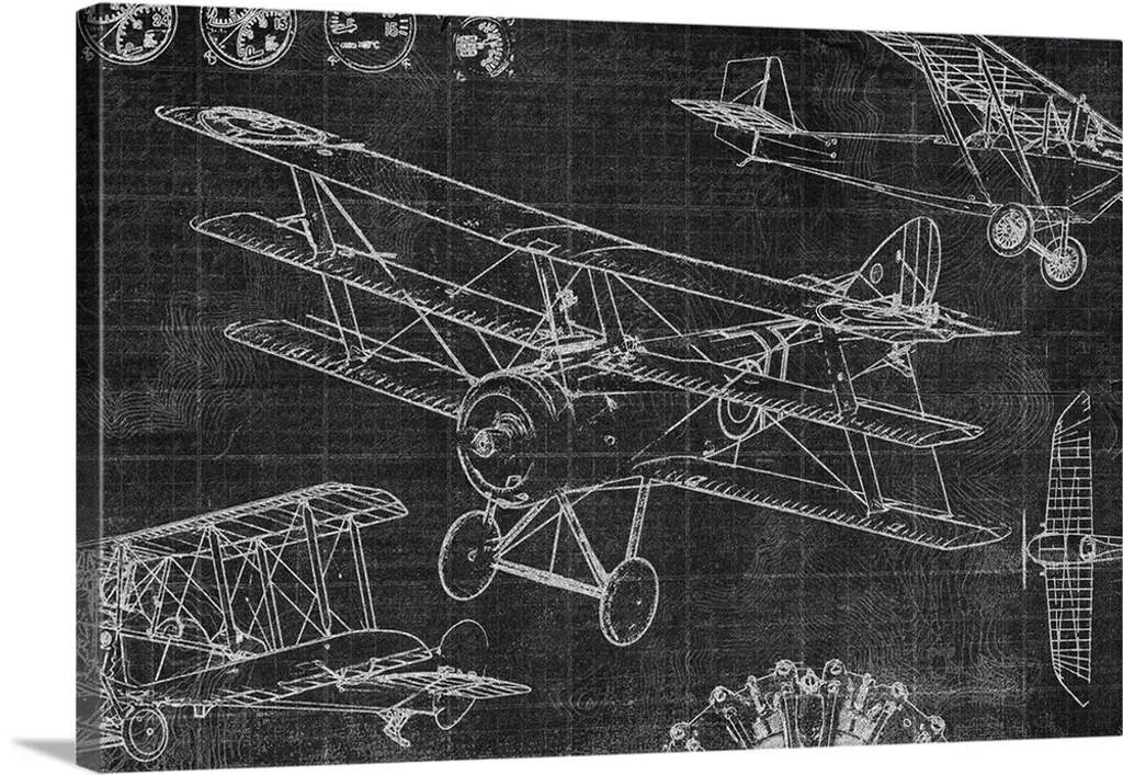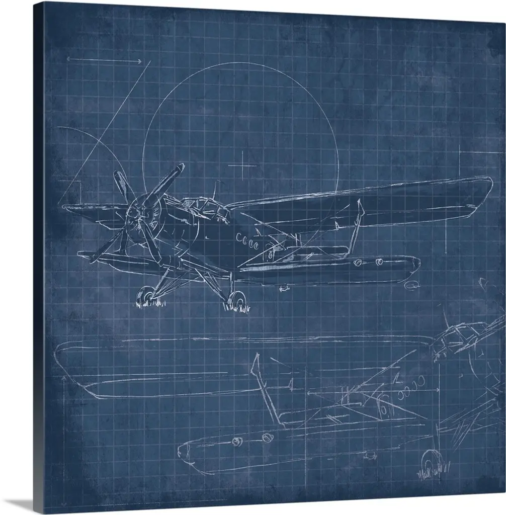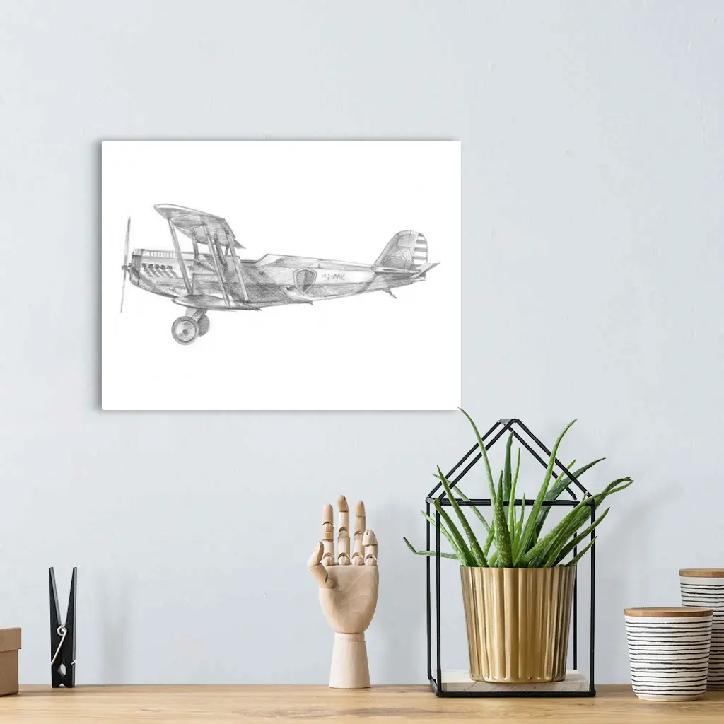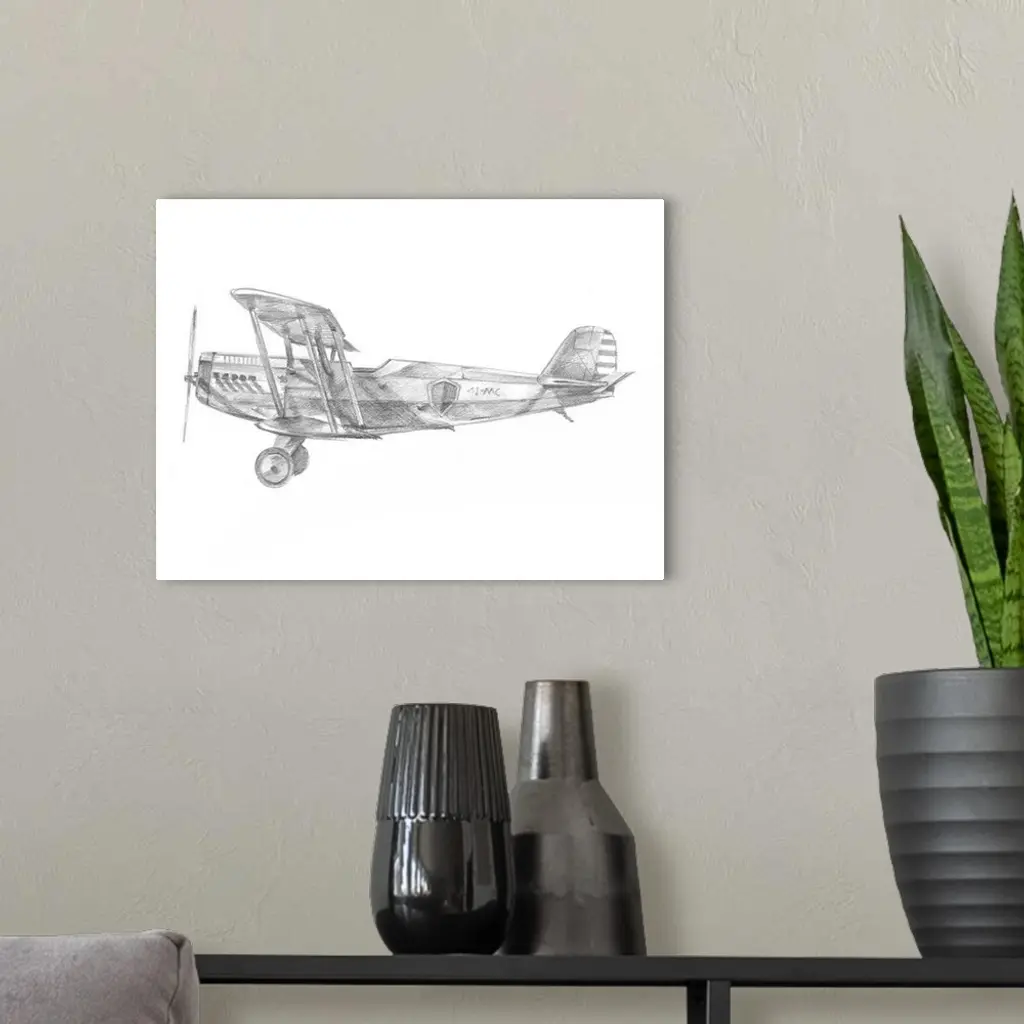 Contemporary artwork of an airplane sketched on a white background.