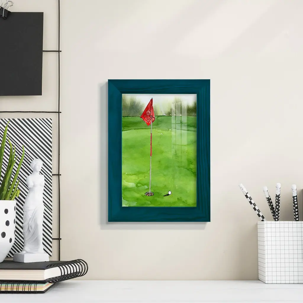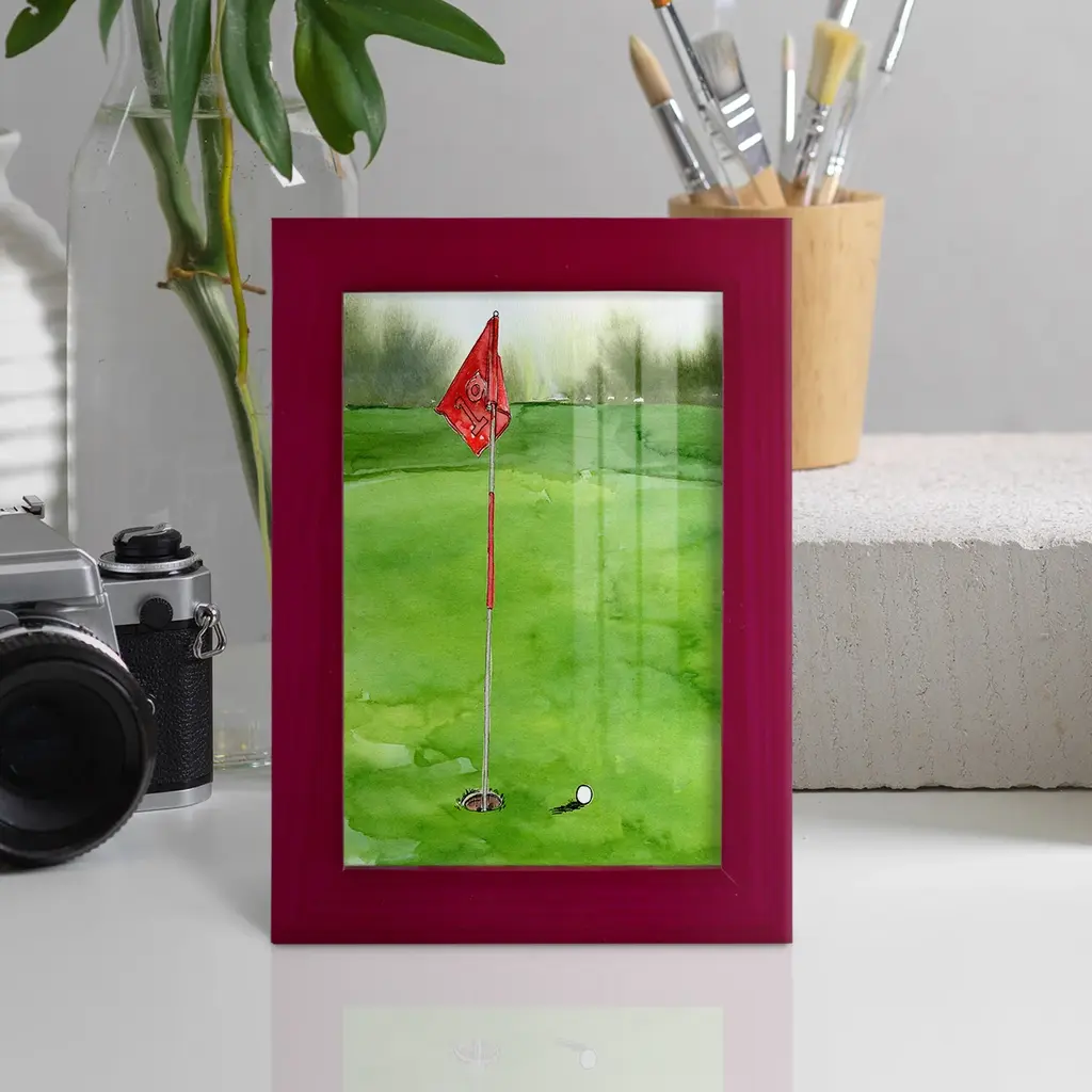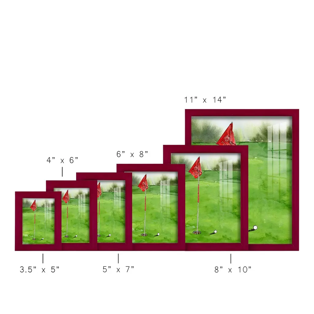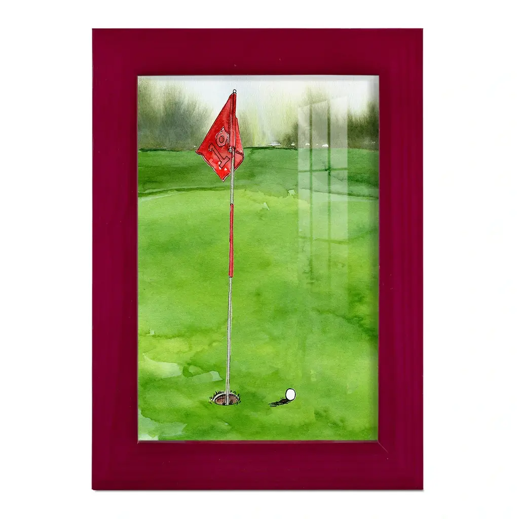 Tee Off Time I -EZ SWITCH Framed Print w/glass-Cherry Red A delightful, framed print. Featuring a solid wood frame with real wood glass. This premium print is giclee quality. In addition, every frame features a removable back and table top stand. This allows you to change your art in the future or to just stand the art on a table for a new look. We are sure you'll enjoy our new series of EZ SWITCH Framed Art. Solid Wood Frame Real Glass Removable / Replaceable Art Built in Tabletop Stand Sizes range from 4x6 up to 12x15 - buy just one or pair them up as sets as you see fit.