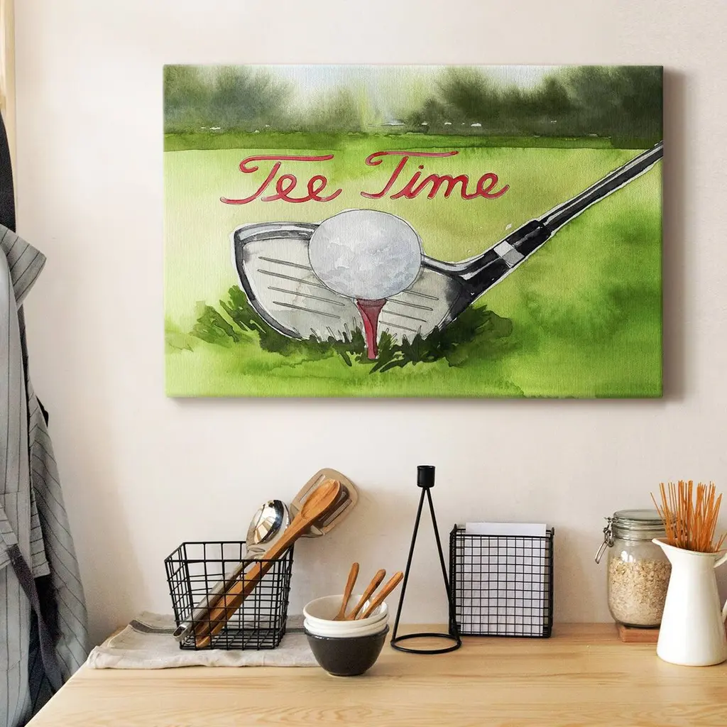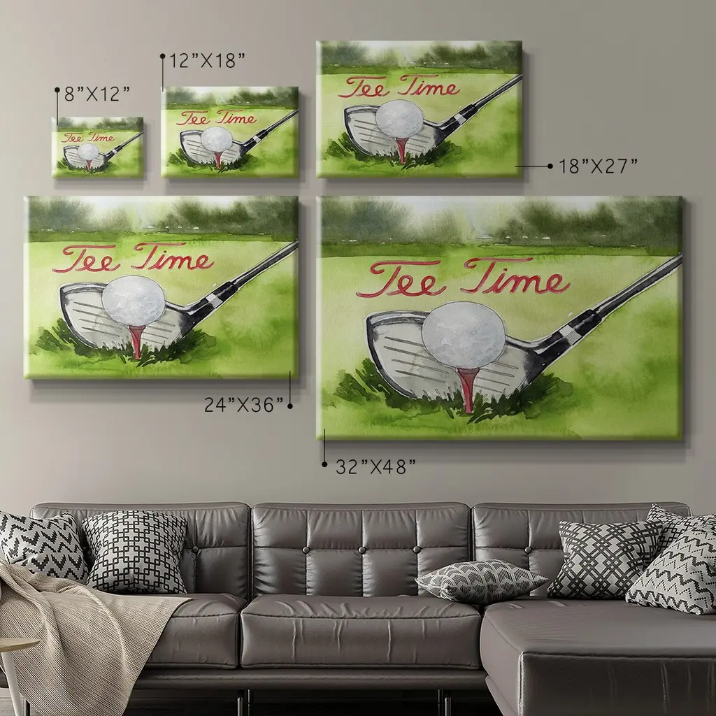 Tee Off Time III Premium Gallery Wrapped Canvas - Ready to Hang A premium hand stretched gallery wrapped canvas print created to last. Featuring a beveled a solid wood stretcher bar, each piece comes ready to hand 6 SIZES AVAILABLE 8''X12'' - Overall Size 12''X18'' - Overall Size 18''X27'' - Overall Size 24''x36'' - Overall Size 32''x48'' - Overall Size 40''x60'' - Overall Size Each piece is made to order. Built to Last Each piece comes ready to hang Solid wood stretcher Fade and Water resistant Made domestically