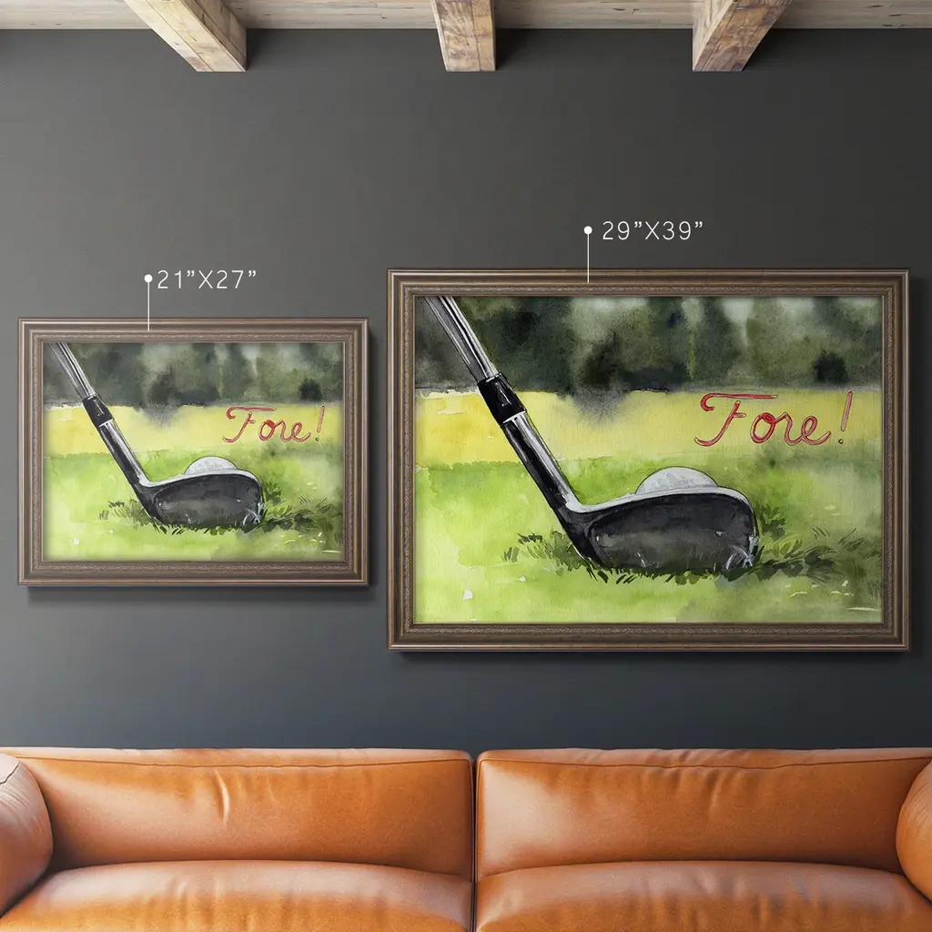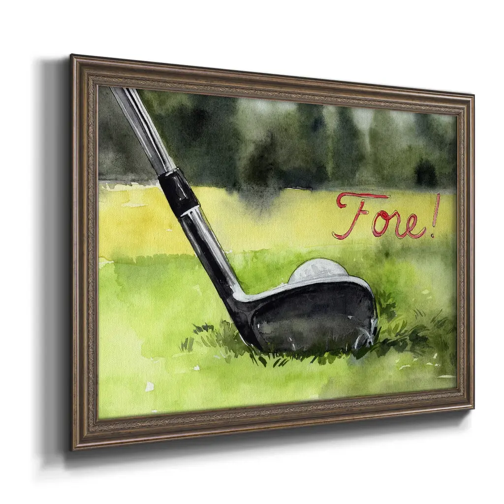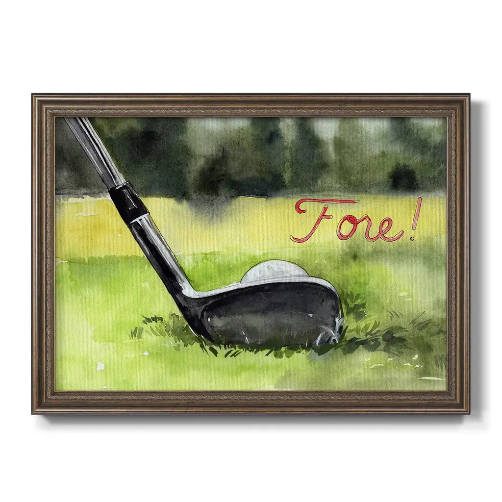 Tee Off Time IV Premium Framed Canvas- Ready to Hang A Premium Framed Canvas created to last. Framed in distressed wood and available in an array of sizes and colors Featuring a beveled a solid wood stretcher bar, each piece comes ready to hand 3 SIZES AVAILABLE 16''X20'' - Overall Size 18'X27'' - Overall Size 24''x36'' - Overall Size Each piece is made to order. Each piece comes with hanging hardware. Made in the USA Ready to Hang Giclee Paper Print Acrylic Glass Beveled Matt Board