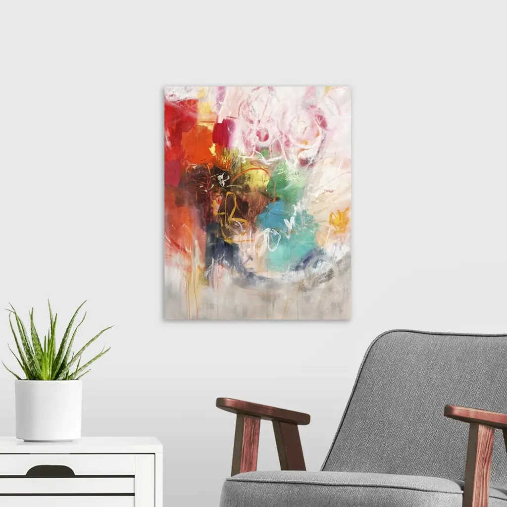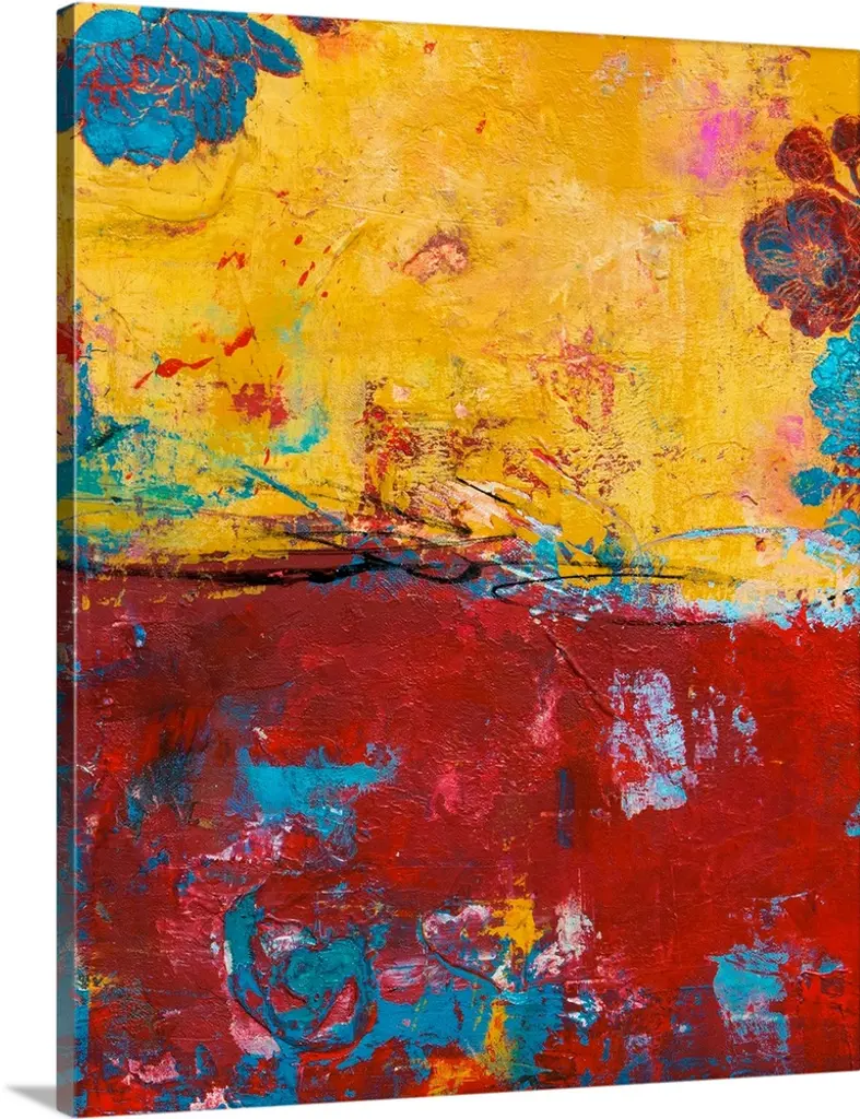 Brightly colored contemporary abstract artwork in rainbow colors.
