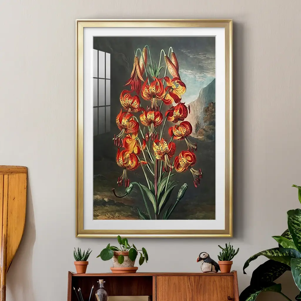 Temple of Flora III Premium Framed Print - Ready to Hang A Premium Framed Print created to last. Framed in distressed wood and available in an array of sizes and colors Featuring a beveled a solid wood stretcher bar, each piece comes ready to hand 4 SIZES AVAILABLE 30.5''X42.5'' - Overall Size 26.5'X36.5'' - Overall Size 22.5''x30.5'' - Overall Size 18.5''x24.5'' - Overall Size Each piece is made to order. Each piece comes with hanging hardware. Made in the USA Ready to Hang Giclee Paper Print Acrylic Glass Beveled Matt Board