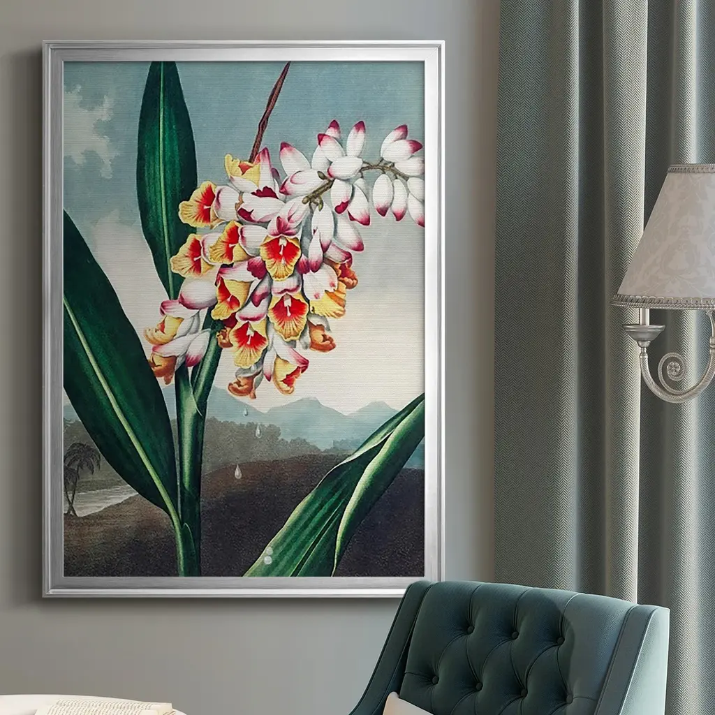 Temple of Flora VII Premium Framed Print - Ready to Hang A Premium Framed Print created to last. Framed in distressed wood and available in an array of sizes and colors Featuring a beveled a solid wood stretcher bar, each piece comes ready to hand 4 SIZES AVAILABLE 30.5''X42.5'' - Overall Size 26.5'X36.5'' - Overall Size 22.5''x30.5'' - Overall Size 18.5''x24.5'' - Overall Size Each piece is made to order. Each piece comes with hanging hardware. Made in the USA Ready to Hang