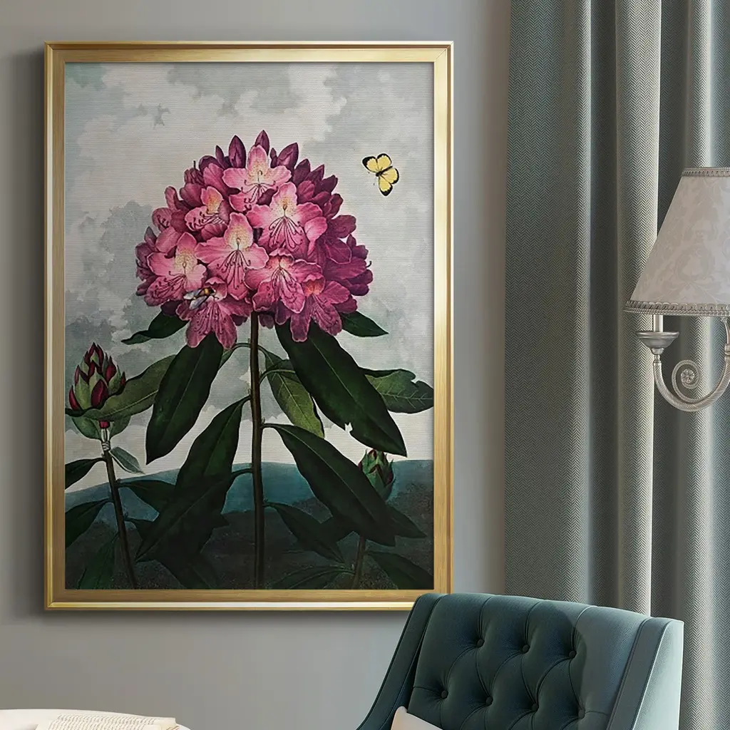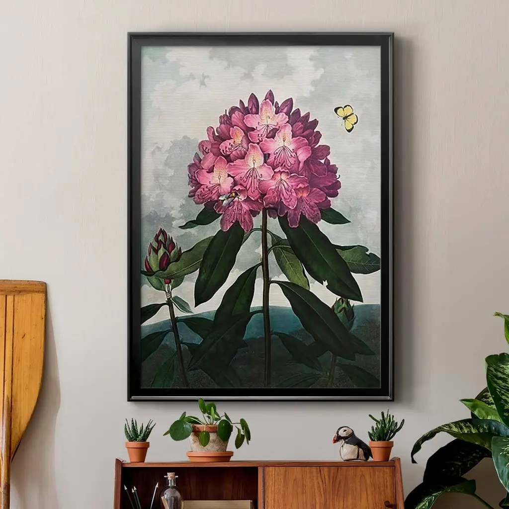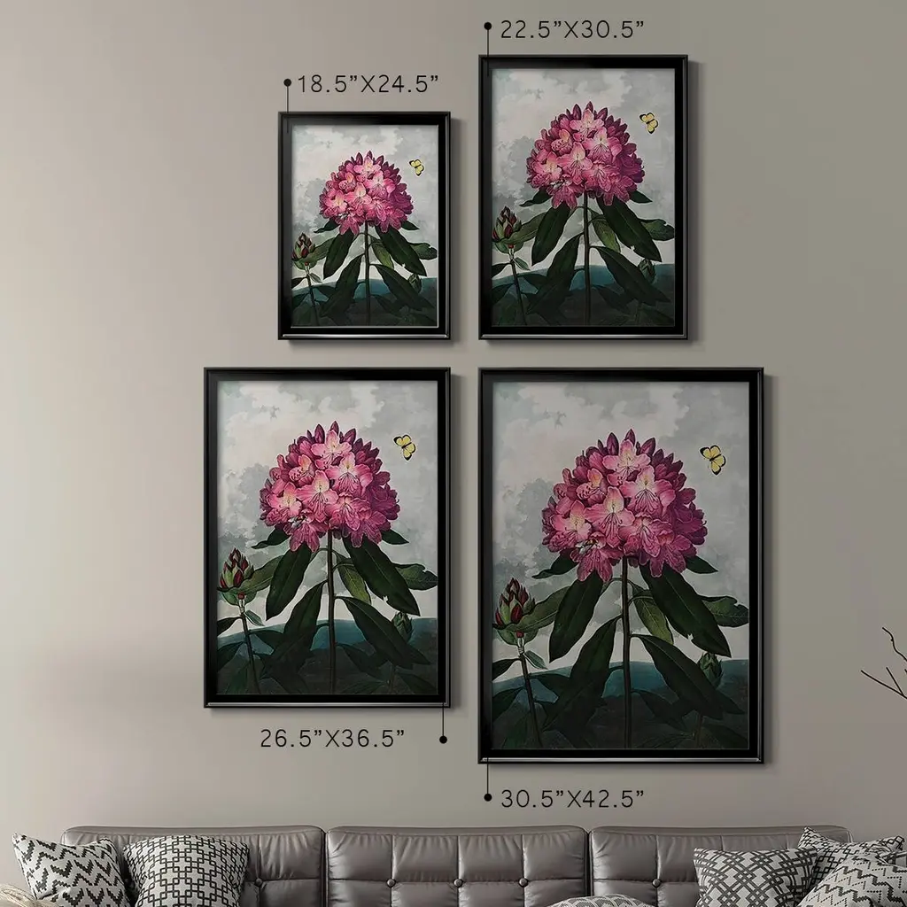 Temple of Flora X Premium Framed Print - Ready to Hang A Premium Framed Print created to last. Framed in distressed wood and available in an array of sizes and colors Featuring a beveled a solid wood stretcher bar, each piece comes ready to hand 4 SIZES AVAILABLE 30.5''X42.5'' - Overall Size 26.5'X36.5'' - Overall Size 22.5''x30.5'' - Overall Size 18.5''x24.5'' - Overall Size Each piece is made to order. Each piece comes with hanging hardware. Made in the USA Ready to Hang