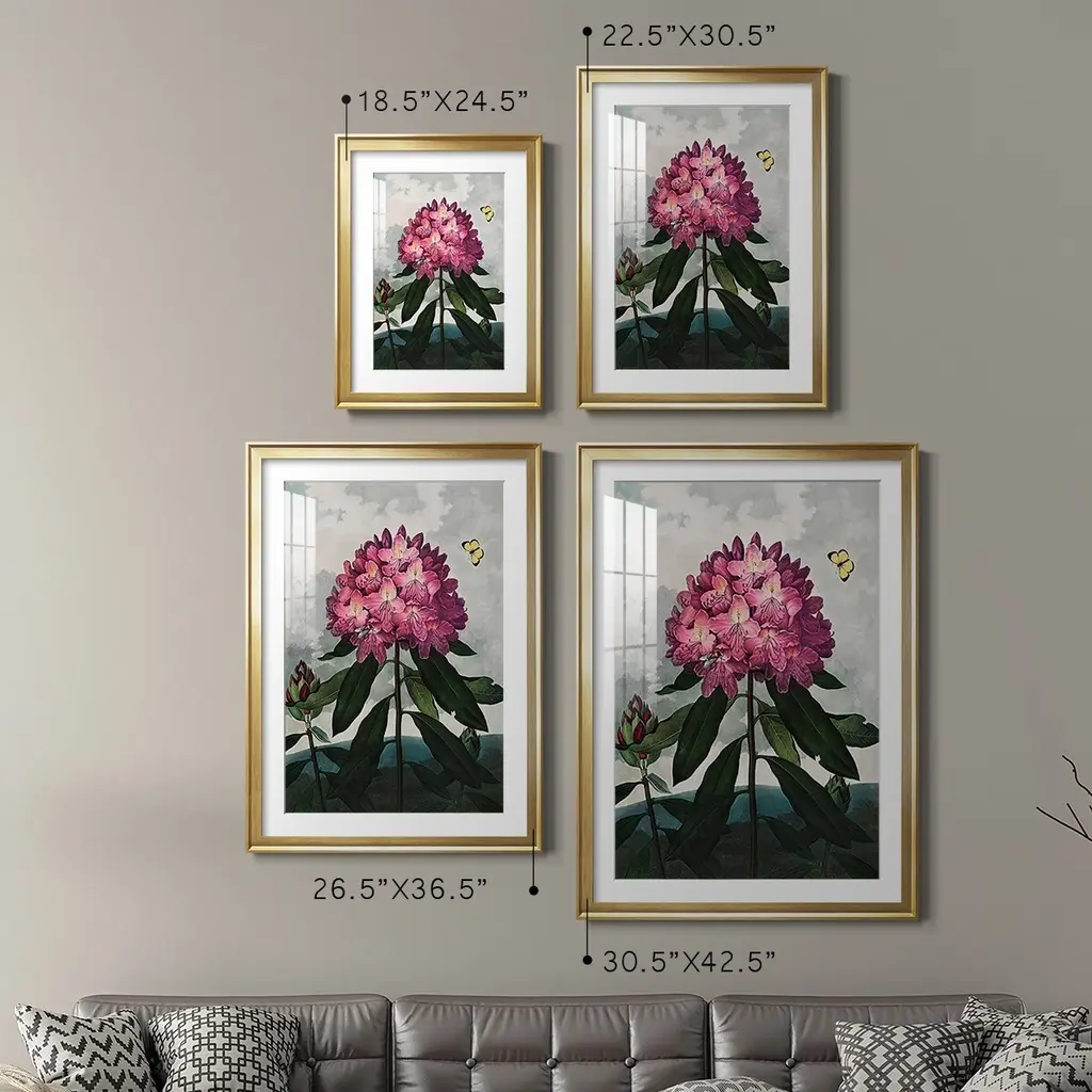 Temple of Flora X Premium Framed Print - Ready to Hang A Premium Framed Print created to last. Framed in distressed wood and available in an array of sizes and colors Featuring a beveled a solid wood stretcher bar, each piece comes ready to hand 4 SIZES AVAILABLE 30.5''X42.5'' - Overall Size 26.5'X36.5'' - Overall Size 22.5''x30.5'' - Overall Size 18.5''x24.5'' - Overall Size Each piece is made to order. Each piece comes with hanging hardware. Made in the USA Ready to Hang Giclee Paper Print Acrylic Glass Beveled Matt Board