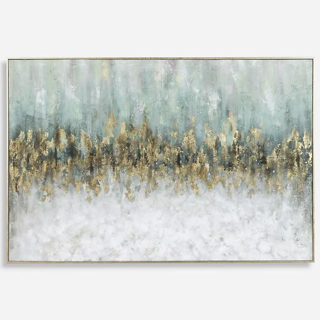 40"W X 60"H X 2"D This stunning textural floral artwork by Teng Fei against a silver-leaf setting is a wonderful statement piece.