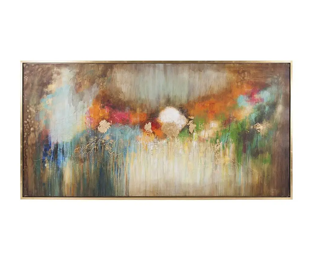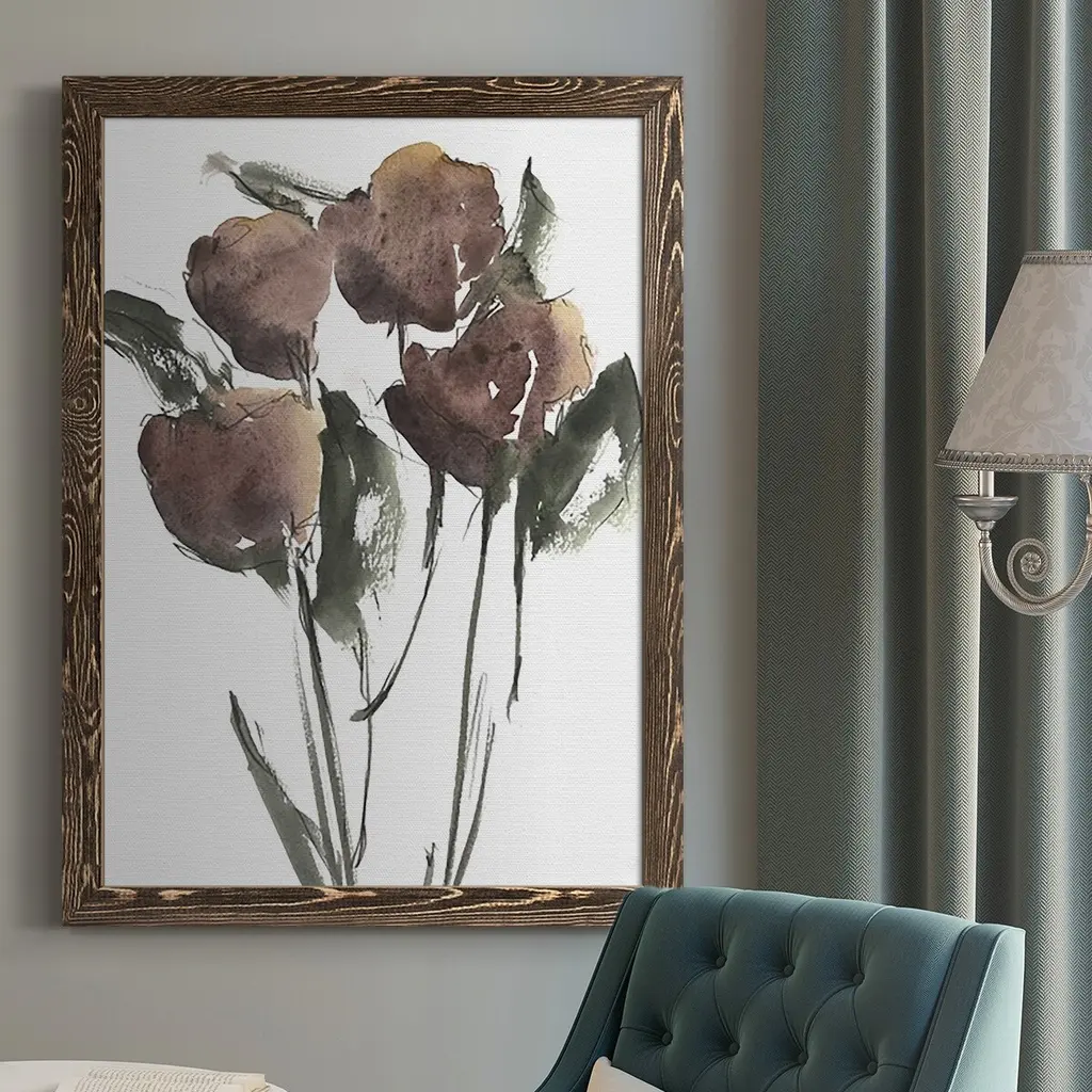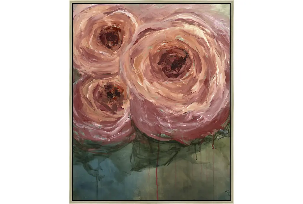 Mist-Touched Blossoms by artist Teng Fei is a naturally inspired oil painting on canvas. This masterful piece showcases gorgeous orange flowers enveloped within a dream-like veil of mist. The artwork is held within a black pinewood gallery frame and may only be displayed from a vertical orientation.