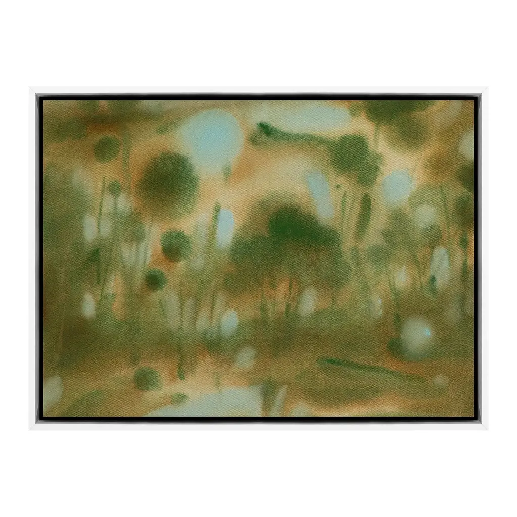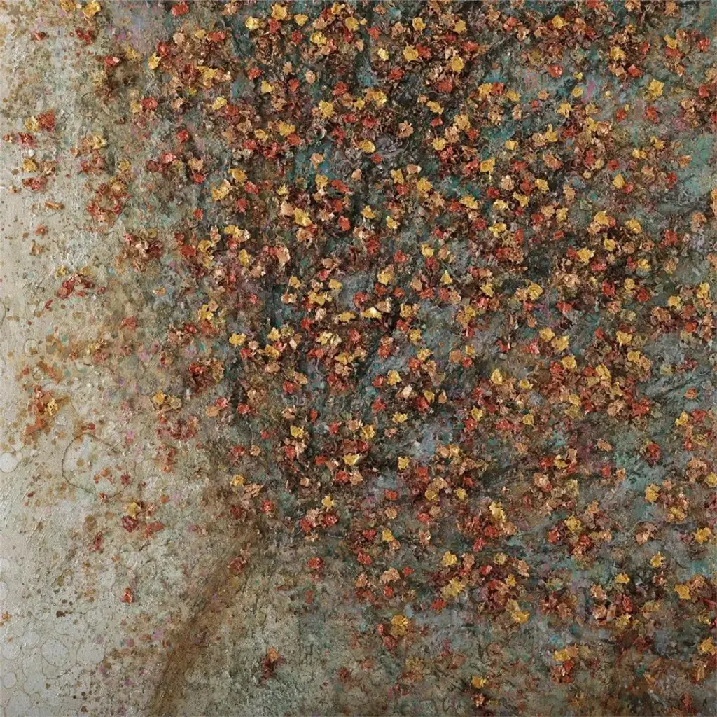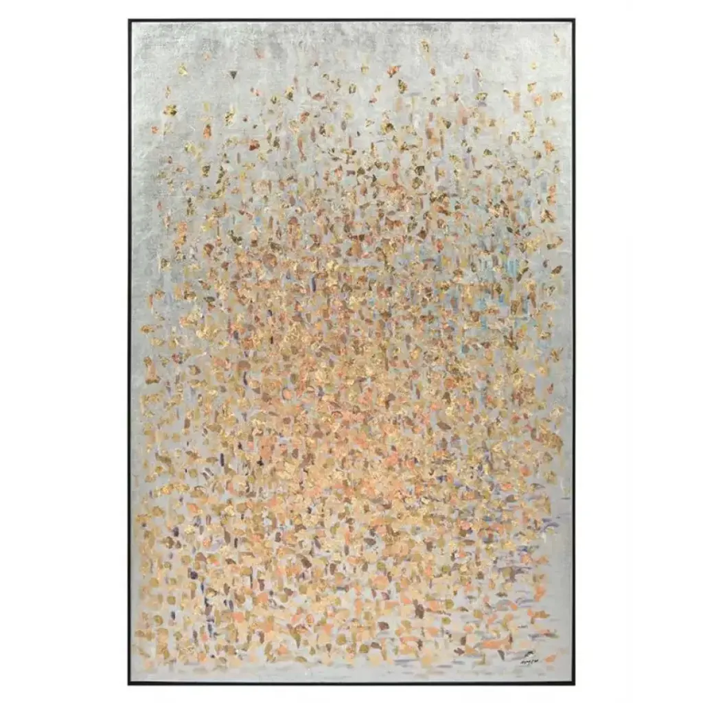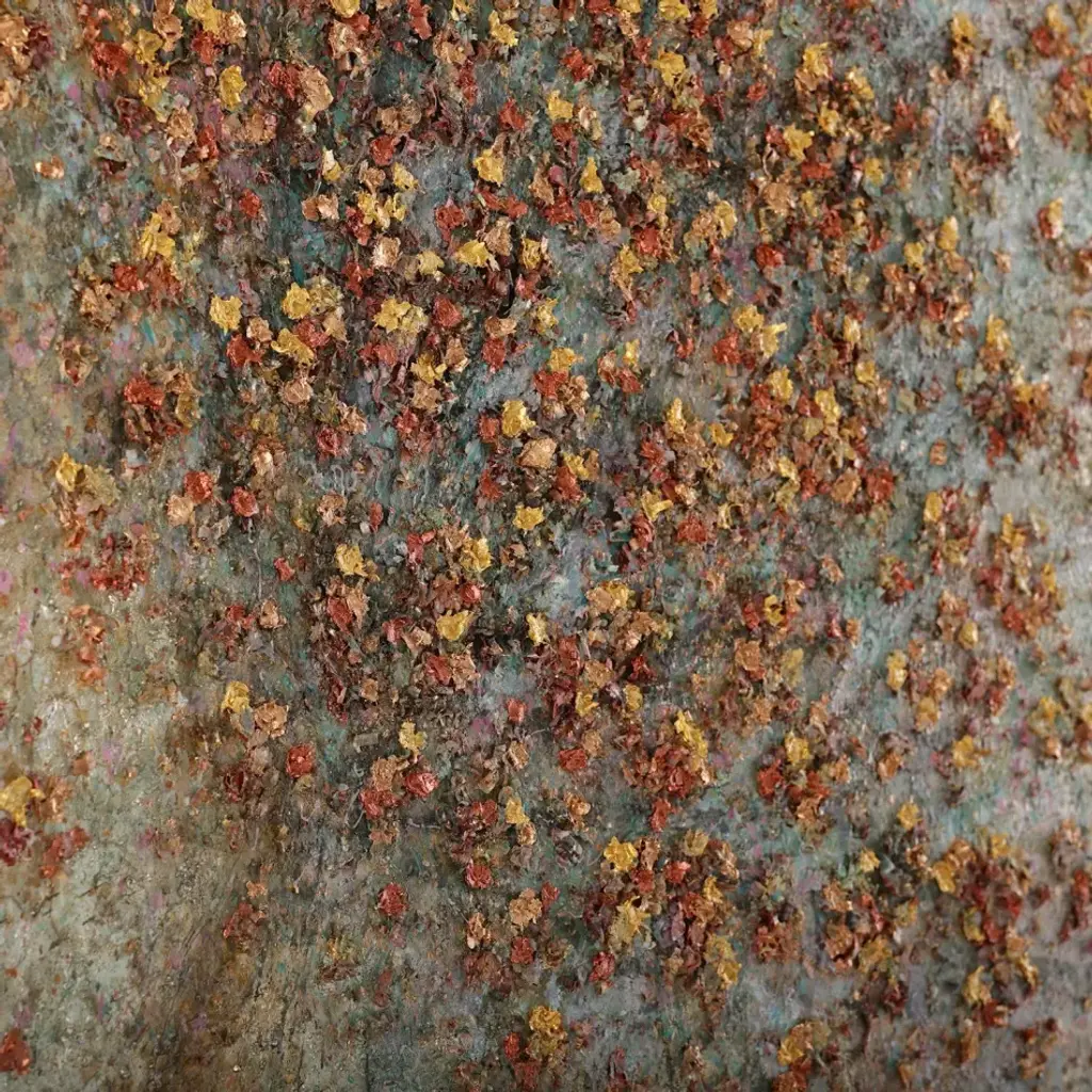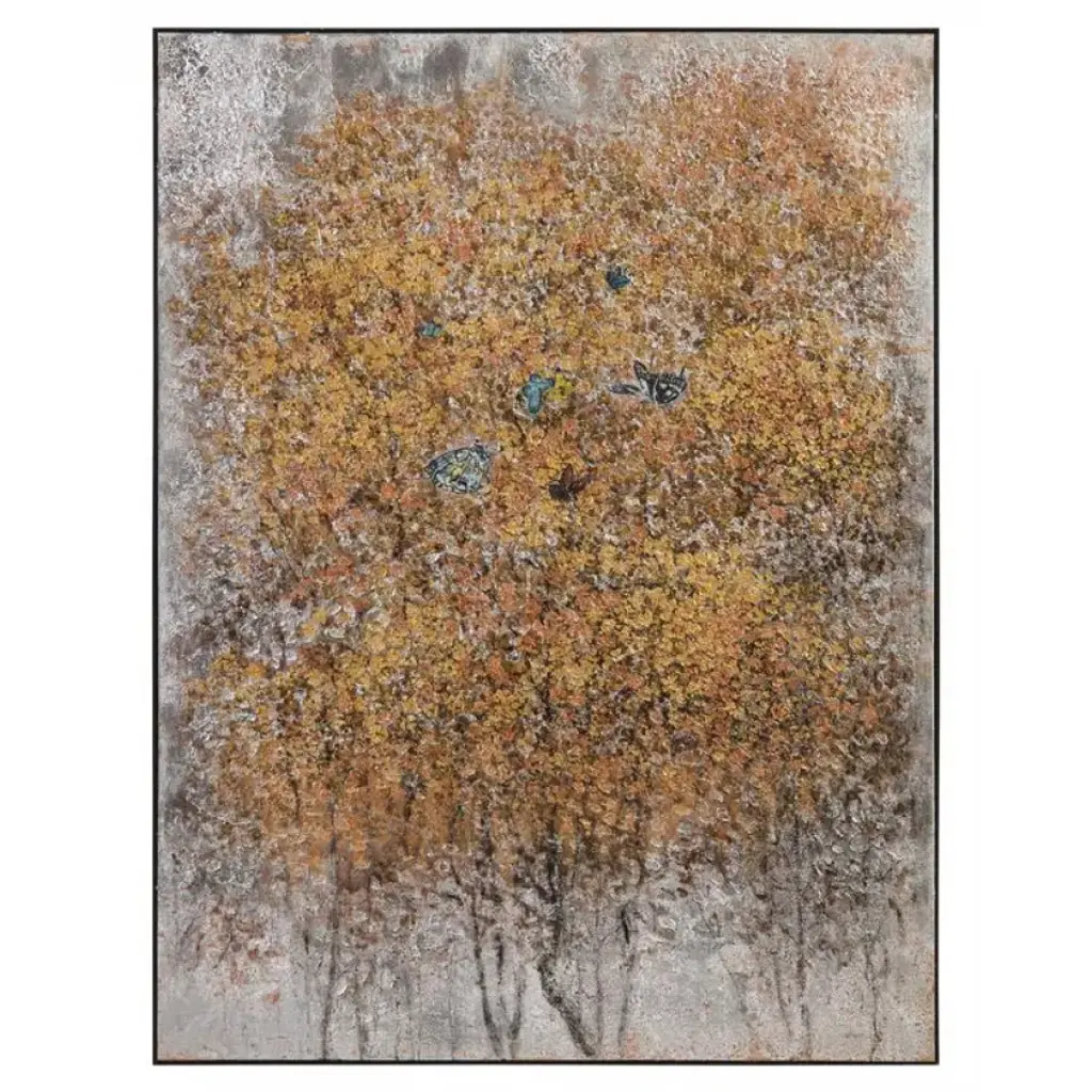 Scattered to the Wind by artist Teng Fei is an elegant oil painting on canvas, depicting a stunning tree overlain with dimensional leaves. This beautiful natural motif is displayed from a black floater frame.