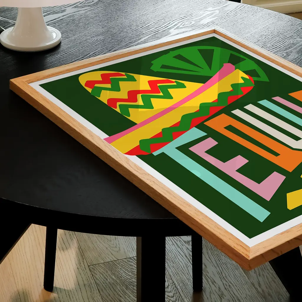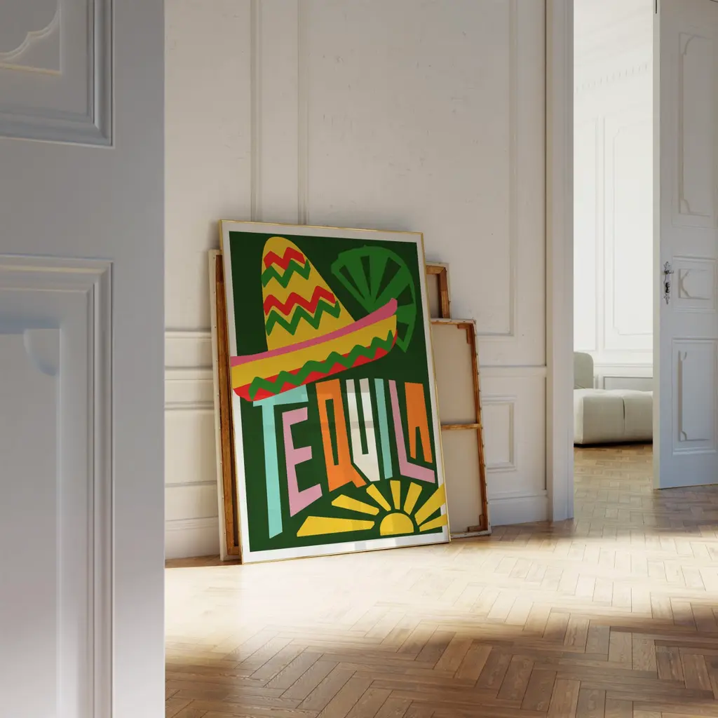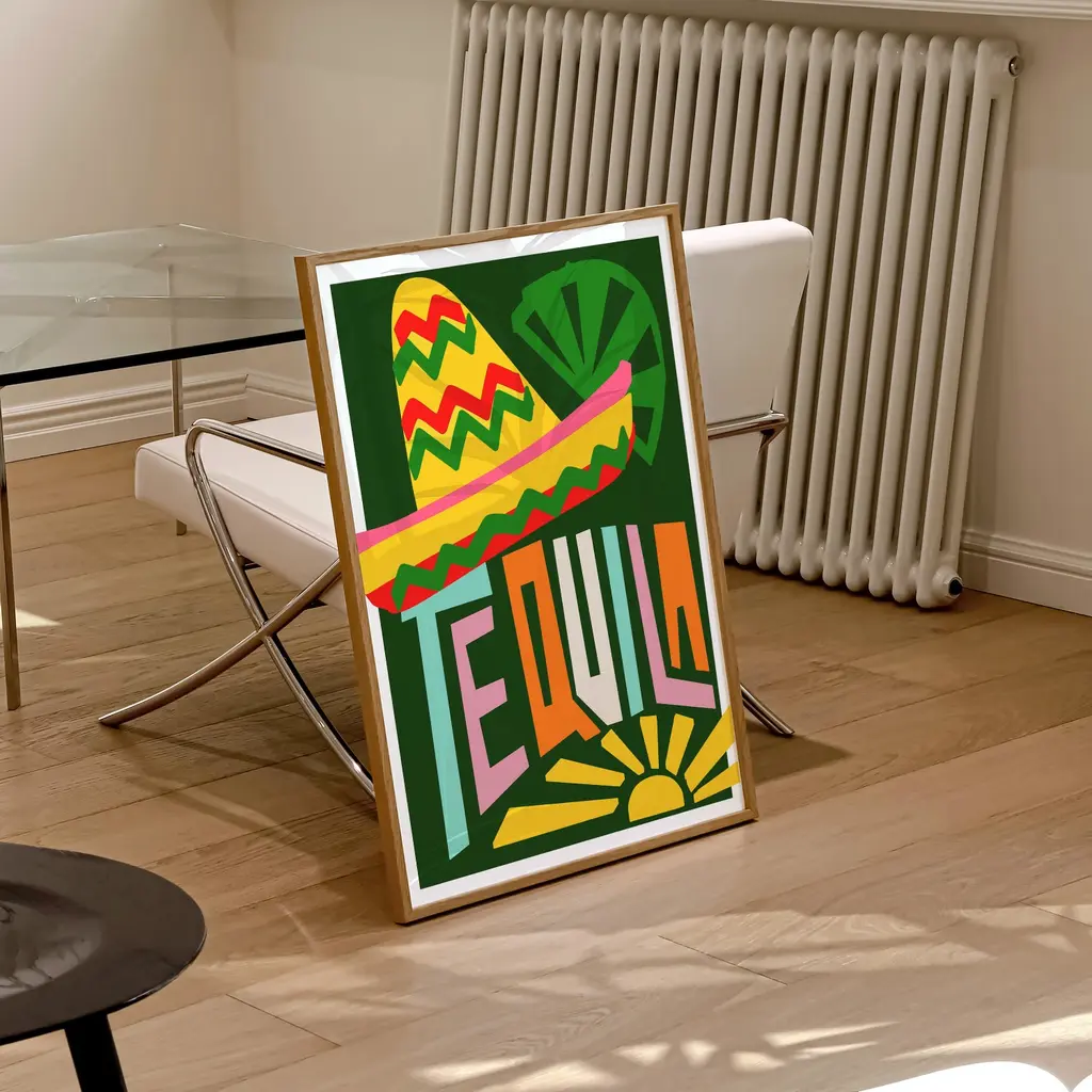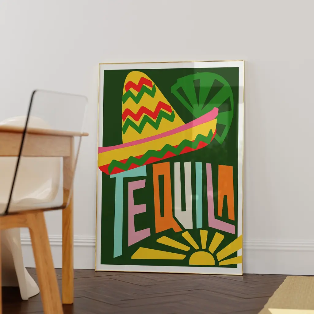 Tequila Art Print - A3 sizeA fun and colourful addition to your bar cart or kitchen. All prints are digitally designed by myself and printed to order.Smooth fine art 230 gsm matte card. Printed with vivid colour and detail. Sold without a frame.