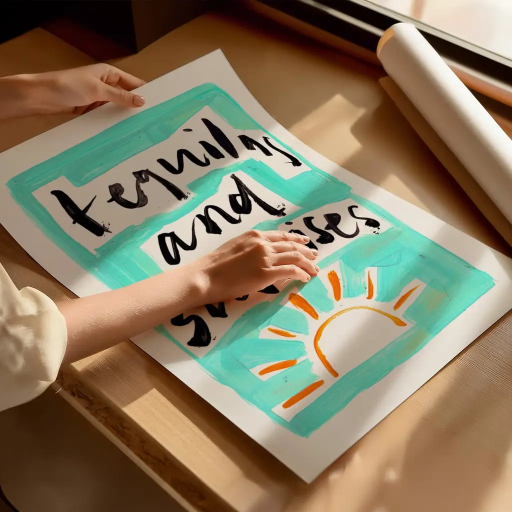 Tequilas & Sunrises Hand Painted Art Print - A3