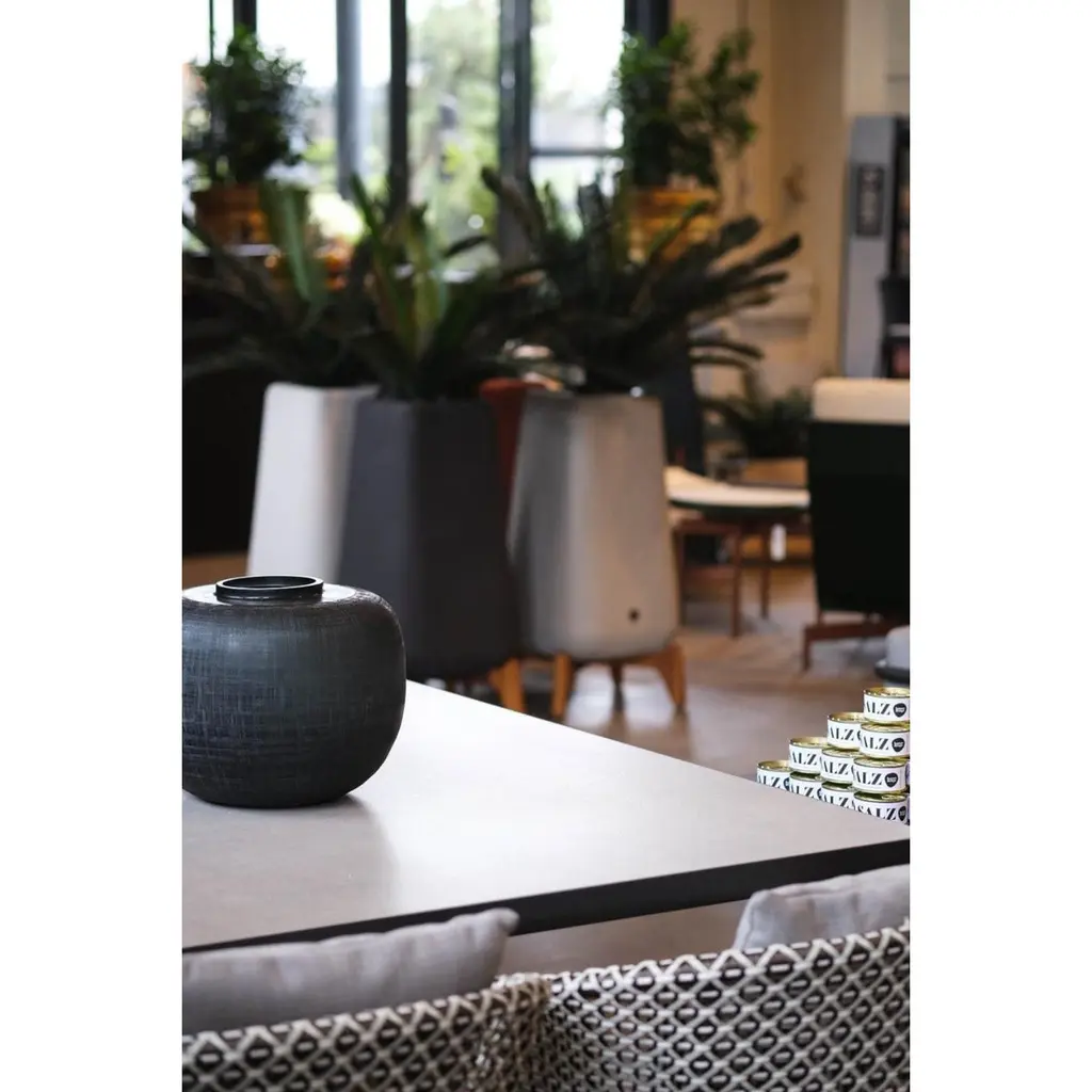 Terra Tall Black Planter With Natural Wood Base by IndigenusDesigned by Laurie Wiid van HeerdenDimensions: W 60,2 x H 130 cm.Materials: Stone and wood.Weight: 82 kg.Different colors and sizes are available. Wood is available with a natural or oiled finish. Please contact us.Latin for “earth” the Terra brings weight and grounding to planters raised on stands in the mid-century modern tradition. It is also square adding to the solidity and the wooden bases are contoured and sculpted into the planter making for a stable earthy interpretation that still feels light, modern, and elegantly curvaceous.Indigenus, founded in 2014, is the brainchild of Cape Town local, Peter van der Post. At the beginning of his career, whilst working in roto-moulding, Peter noticed a lack of high design planters in the market and the vision to produce the most beautiful, original, and desirable planters began to grow. Over the past 8 years, the Indigenus team has collaborated with South Africa’s top designers to create planters that are art pieces in their own right. 2022 has seen exciting collaborations further afield with internationally renowned designers and collaborators. In line with our sustainability and quality luxury objectives, we are constantly striving to make planters for life and not just for a few seasons. It has taken years of refinement, many valuable lessons learned and, ultimately, setting up our world-class factory for in-house manufacturing to be able to ensure that the planters are of the highest quality. All materials are sustainably sourced and the planters are made by hand. It is this craftsmanship that puts Indigenus in a league of its own. Each range of planters is unique and illustrates the impact that beautiful sculptural planters have on architecture and landscapes. The planters' close connection to the earth is expressed through a stable and grounded design, made with beautiful natural materials and evoking an underlying story of our relationship with the natural world.Indigenus is focused on collaboration with the world’s top designers and artists. We are committed to constant refinement and a willingness to be courageous, curious, and experimental with natural materials and new designs. We have built solid distributor networks and relationships that we are committed to maintaining and growing globally. We are proud of our roots as an African luxury brand with a global footprint.