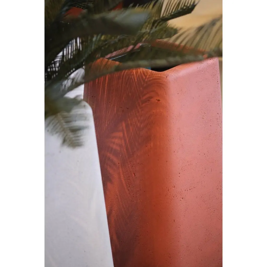 Terra Tall Brown Planter With Oiled Wood Base by IndigenusDesigned by Laurie Wiid van HeerdenDimensions: W 60,2 x H 130 cm.Materials: Stone and wood.Weight: 82 kg.Different colors and sizes are available. Wood is available with a natural or oiled finish. Please contact us.Latin for “earth” the Terra brings weight and grounding to planters raised on stands in the mid-century modern tradition. It is also square adding to the solidity and the wooden bases are contoured and sculpted into the planter making for a stable earthy interpretation that still feels light, modern, and elegantly curvaceous.Indigenus, founded in 2014, is the brainchild of Cape Town local, Peter van der Post. At the beginning of his career, whilst working in roto-moulding, Peter noticed a lack of high design planters in the market and the vision to produce the most beautiful, original, and desirable planters began to grow. Over the past 8 years, the Indigenus team has collaborated with South Africa’s top designers to create planters that are art pieces in their own right. 2022 has seen exciting collaborations further afield with internationally renowned designers and collaborators. In line with our sustainability and quality luxury objectives, we are constantly striving to make planters for life and not just for a few seasons. It has taken years of refinement, many valuable lessons learned and, ultimately, setting up our world-class factory for in-house manufacturing to be able to ensure that the planters are of the highest quality. All materials are sustainably sourced and the planters are made by hand. It is this craftsmanship that puts Indigenus in a league of its own. Each range of planters is unique and illustrates the impact that beautiful sculptural planters have on architecture and landscapes. The planters' close connection to the earth is expressed through a stable and grounded design, made with beautiful natural materials and evoking an underlying story of our relationship with the natural world.Indigenus is focused on collaboration with the world’s top designers and artists. We are committed to constant refinement and a willingness to be courageous, curious, and experimental with natural materials and new designs. We have built solid distributor networks and relationships that we are committed to maintaining and growing globally. We are proud of our roots as an African luxury brand with a global footprint.