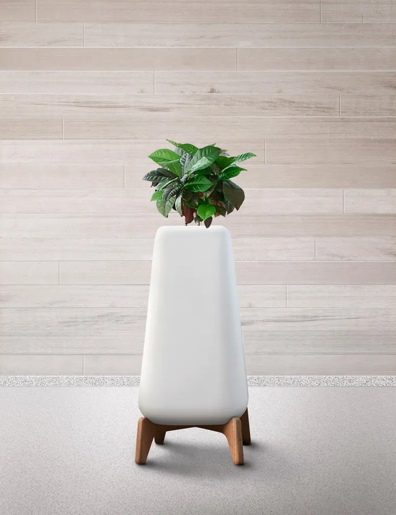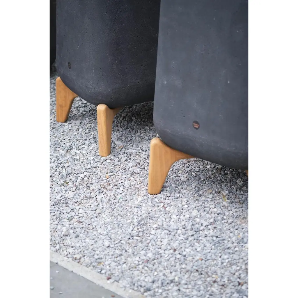 Terra Tall Terracotta Planter With Natural Wood Base by IndigenusDesigned by Laurie Wiid van HeerdenDimensions: W 60,2 x H 130 cm.Materials: Stone and wood.Weight: 82 kg.Different colors and sizes are available. Wood is available with a natural or oiled finish. Please contact us.Latin for “earth” the Terra brings weight and grounding to planters raised on stands in the mid-century modern tradition. It is also square adding to the solidity and the wooden bases are contoured and sculpted into the planter making for a stable earthy interpretation that still feels light, modern, and elegantly curvaceous.Indigenus, founded in 2014, is the brainchild of Cape Town local, Peter van der Post. At the beginning of his career, whilst working in roto-moulding, Peter noticed a lack of high design planters in the market and the vision to produce the most beautiful, original, and desirable planters began to grow. Over the past 8 years, the Indigenus team has collaborated with South Africa’s top designers to create planters that are art pieces in their own right. 2022 has seen exciting collaborations further afield with internationally renowned designers and collaborators. In line with our sustainability and quality luxury objectives, we are constantly striving to make planters for life and not just for a few seasons. It has taken years of refinement, many valuable lessons learned and, ultimately, setting up our world-class factory for in-house manufacturing to be able to ensure that the planters are of the highest quality. All materials are sustainably sourced and the planters are made by hand. It is this craftsmanship that puts Indigenus in a league of its own. Each range of planters is unique and illustrates the impact that beautiful sculptural planters have on architecture and landscapes. The planters' close connection to the earth is expressed through a stable and grounded design, made with beautiful natural materials and evoking an underlying story of our relationship with the natural world.Indigenus is focused on collaboration with the world’s top designers and artists. We are committed to constant refinement and a willingness to be courageous, curious, and experimental with natural materials and new designs. We have built solid distributor networks and relationships that we are committed to maintaining and growing globally. We are proud of our roots as an African luxury brand with a global footprint.