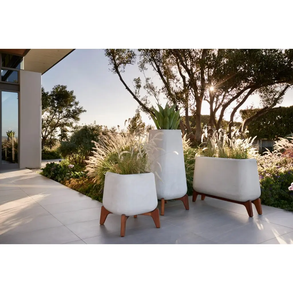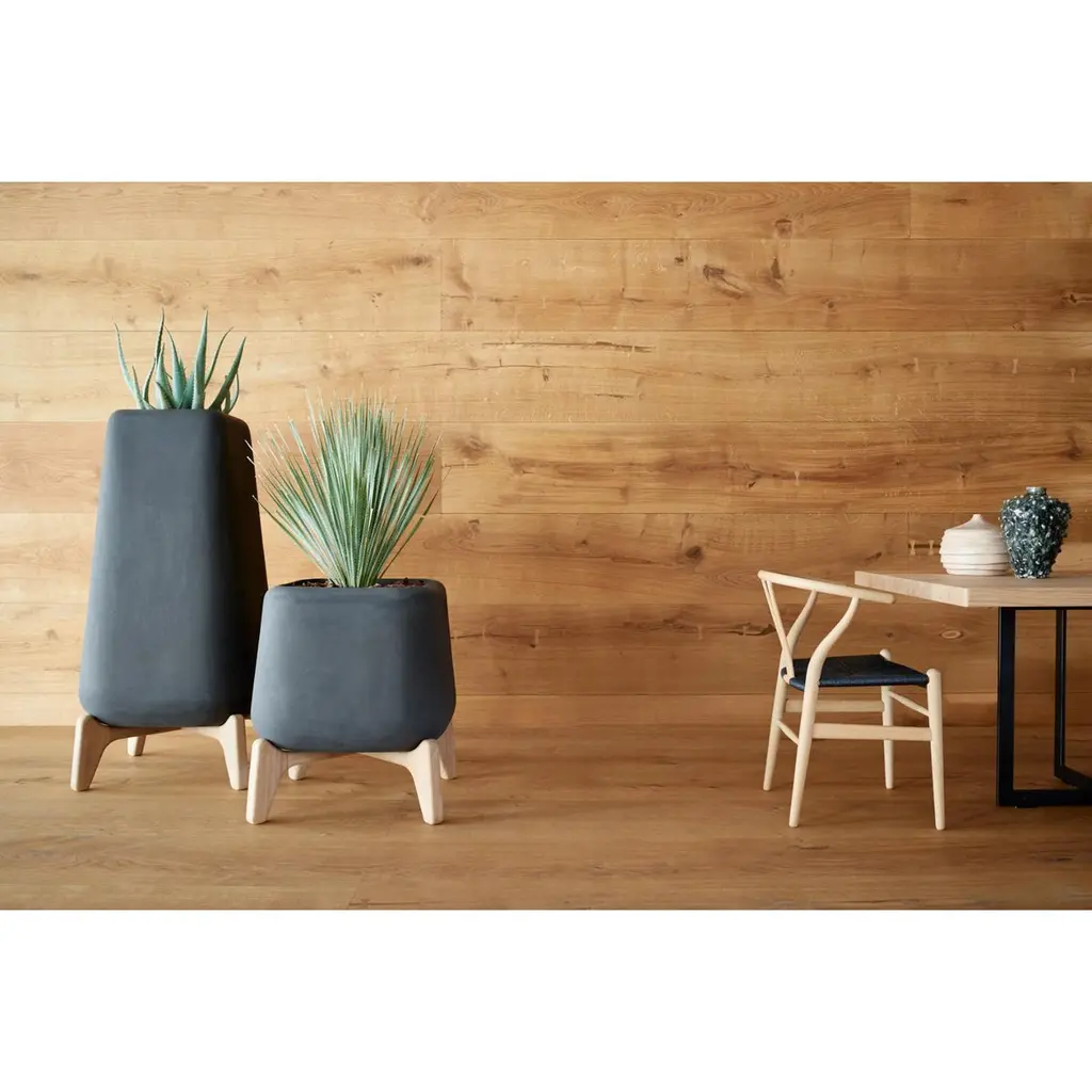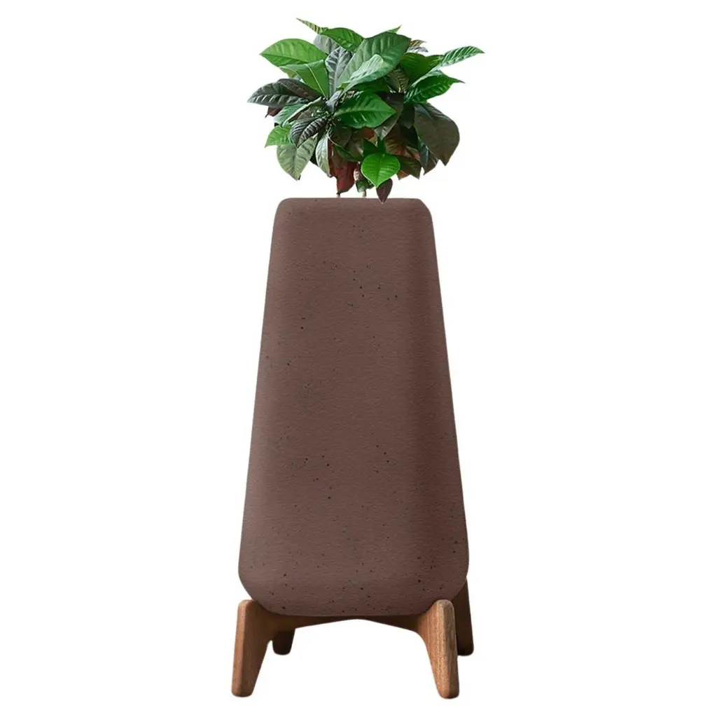 Terra Tall XS Black Planter With Natural Wood Base by IndigenusDesigned by Laurie Wiid van HeerdenDimensions: W 45,2 x H 92,1 cm.Materials: Stone and wood.Weight: 37 kg.Different colors and sizes are available. Wood is available with a natural or oiled finish. Please contact us.Latin for “earth” the Terra brings weight and grounding to planters raised on stands in the mid-century modern tradition. It is also square adding to the solidity and the wooden bases are contoured and sculpted into the planter making for a stable earthy interpretation that still feels light, modern, and elegantly curvaceous.Indigenus, founded in 2014, is the brainchild of Cape Town local, Peter van der Post. At the beginning of his career, whilst working in roto-moulding, Peter noticed a lack of high design planters in the market and the vision to produce the most beautiful, original, and desirable planters began to grow. Over the past 8 years, the Indigenus team has collaborated with South Africa’s top designers to create planters that are art pieces in their own right. 2022 has seen exciting collaborations further afield with internationally renowned designers and collaborators. In line with our sustainability and quality luxury objectives, we are constantly striving to make planters for life and not just for a few seasons. It has taken years of refinement, many valuable lessons learned and, ultimately, setting up our world-class factory for in-house manufacturing to be able to ensure that the planters are of the highest quality. All materials are sustainably sourced and the planters are made by hand. It is this craftsmanship that puts Indigenus in a league of its own. Each range of planters is unique and illustrates the impact that beautiful sculptural planters have on architecture and landscapes. The planters' close connection to the earth is expressed through a stable and grounded design, made with beautiful natural materials and evoking an underlying story of our relationship with the natural world.Indigenus is focused on collaboration with the world’s top designers and artists. We are committed to constant refinement and a willingness to be courageous, curious, and experimental with natural materials and new designs. We have built solid distributor networks and relationships that we are committed to maintaining and growing globally. We are proud of our roots as an African luxury brand with a global footprint.