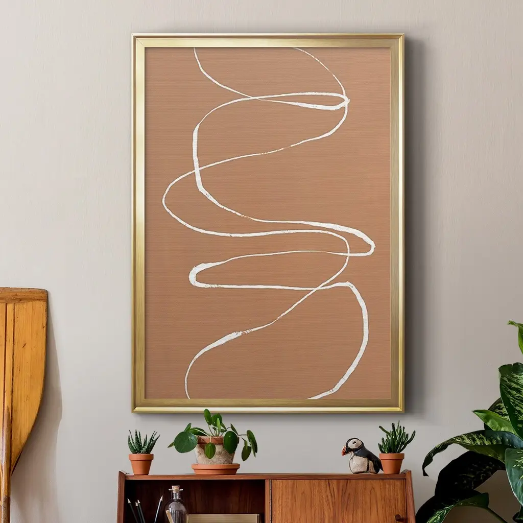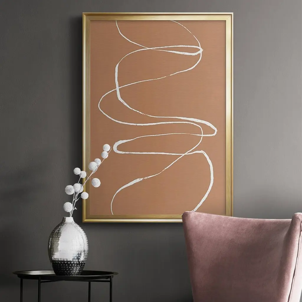 Terracotta Drift I Premium Framed Print - Ready to Hang A Premium Framed Print created to last. Framed in distressed wood and available in an array of sizes and colors Featuring a beveled a solid wood stretcher bar, each piece comes ready to hand 4 SIZES AVAILABLE 30.5''X42.5'' - Overall Size 26.5'X36.5'' - Overall Size 22.5''x30.5'' - Overall Size 18.5''x24.5'' - Overall Size Each piece is made to order. Each piece comes with hanging hardware. Made in the USA Ready to Hang