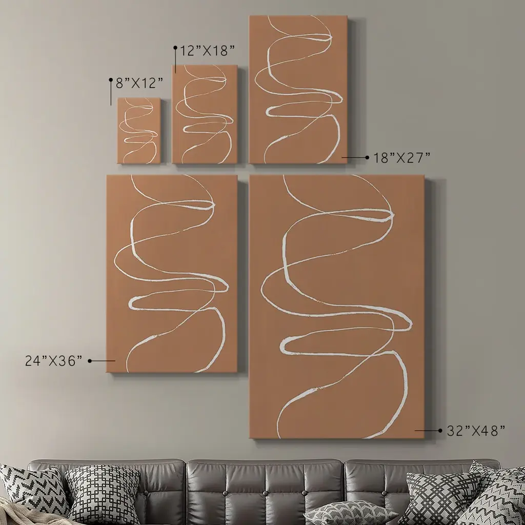 Terracotta Drift I Premium Gallery Wrapped Canvas - Ready to Hang A premium hand stretched gallery wrapped canvas print created to last. Featuring a beveled a solid wood stretcher bar, each piece comes ready to hand 6 SIZES AVAILABLE 8''X12'' - Overall Size 12''X18'' - Overall Size 18''X27'' - Overall Size 24''x36'' - Overall Size 32''x48'' - Overall Size 40''x60'' - Overall Size Each piece is made to order. Built to Last Each piece comes ready to hang Solid wood stretcher Fade and Water resistant Made domestically