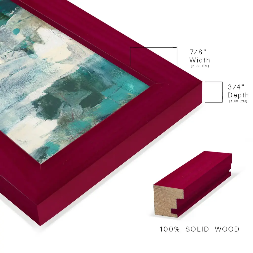 Terrene Abstract I -EZ SWITCH Framed Print w/glass-Cherry Red A delightful, framed print. Featuring a solid wood frame with real wood glass. This premium print is giclee quality. In addition, every frame features a removable back and table top stand. This allows you to change your art in the future or to just stand the art on a table for a new look. We are sure you'll enjoy our new series of EZ SWITCH Framed Art. Solid Wood Frame Real Glass Removable / Replaceable Art Built in Tabletop Stand Sizes range from 4x6 up to 12x15 - buy just one or pair them up as sets as you see fit.