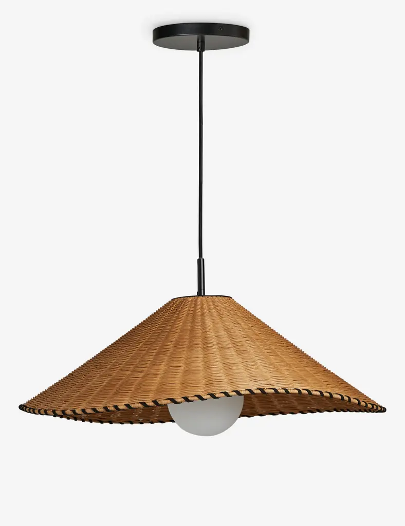 Élan Byrd is a Miami-based artist and textile designer whose tactile pieces celebrate the natural world. The Terrene pendant brings the textural character of Élan's natural fiber artwork to a woven lighting design that fills the room with warmth. Black leather stitching completes this pendant light with a chic edge for impact.