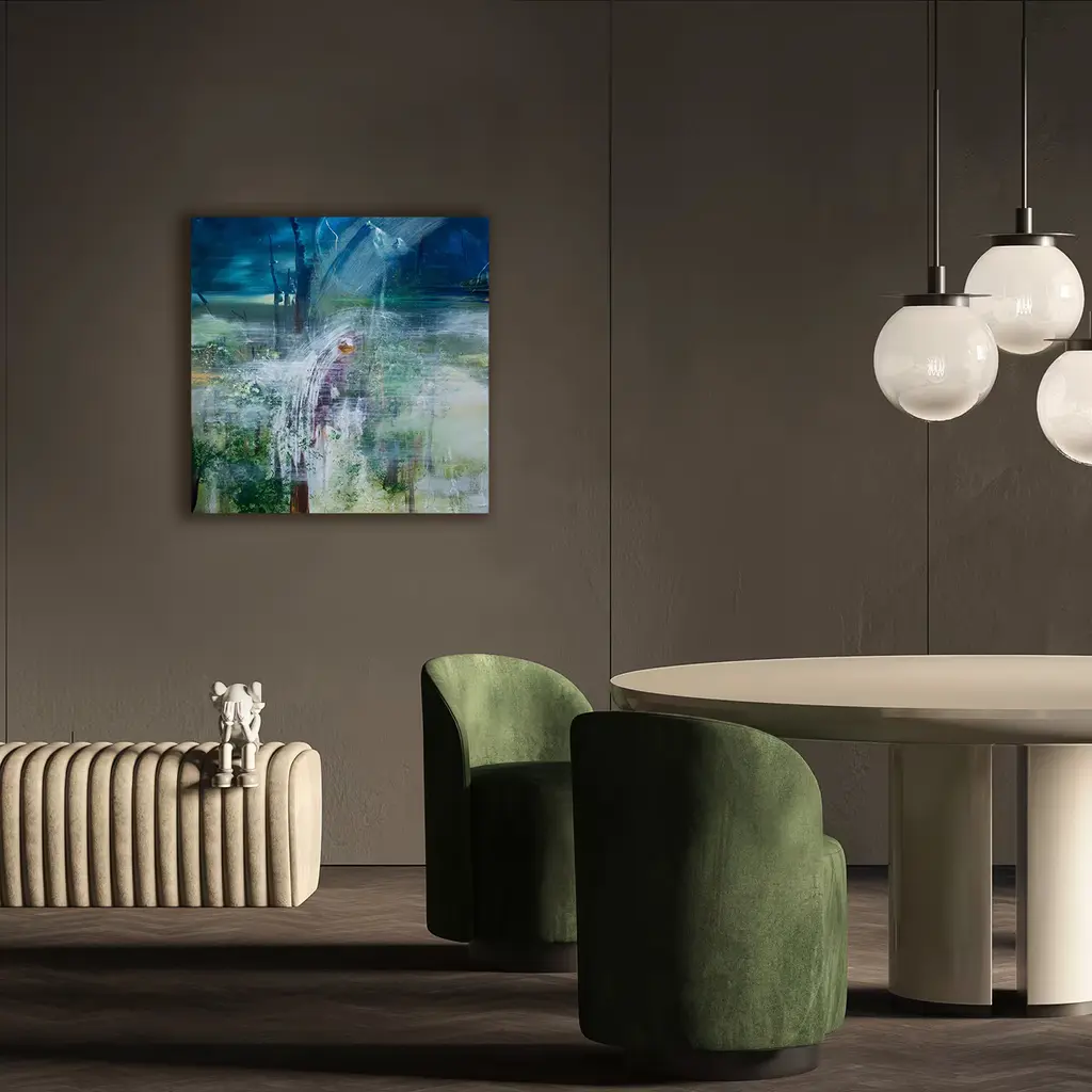 The artwork is mounted on wooden frame support and delivered with a certificate of authenticity.This work is part of Linea Appenino 1201 project. The group of works is inspired by the journey the artist took along the ridge of the Appennine Mountains, climbing the main peaks of the Italian mountains. The project builds on the artist's research on the Mediterranean Sea perceived as a large lake nestled between the mountains, a place of experience and research for him. The painting is acrylic on canvas.