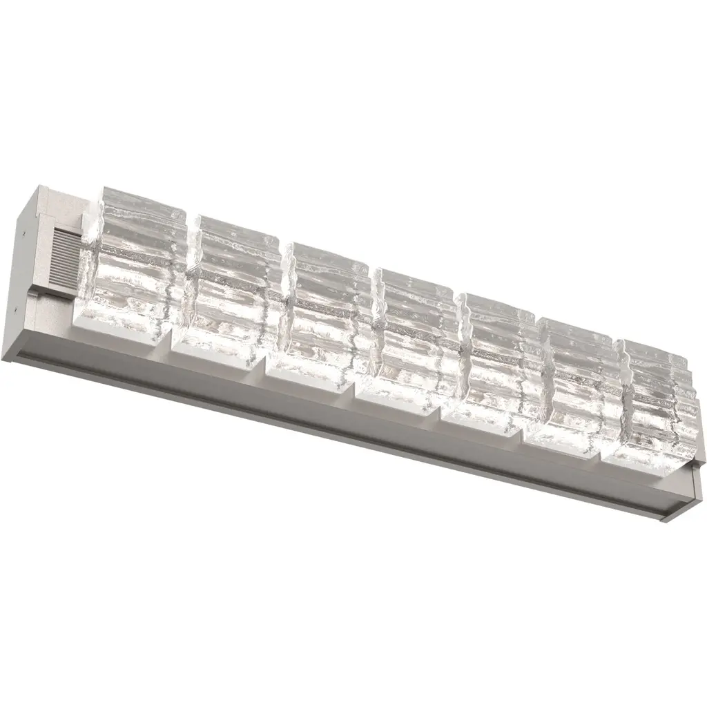 The 2,500-year old art of glass mosaic tiling is brilliantly brought to light in the modern-styled Tessera Vanity Sconce. Choose from five tile motifs in artisan cast crystal glass, two wood-inspired accent motifs, and several finishes. Tessera fixtures are illuminated with 93 CRI integrated LED and are available in 2700K or 3000K color temperature.