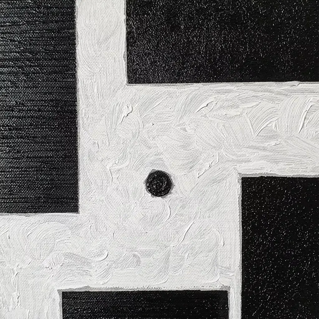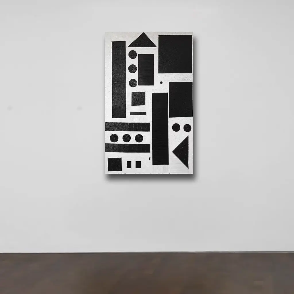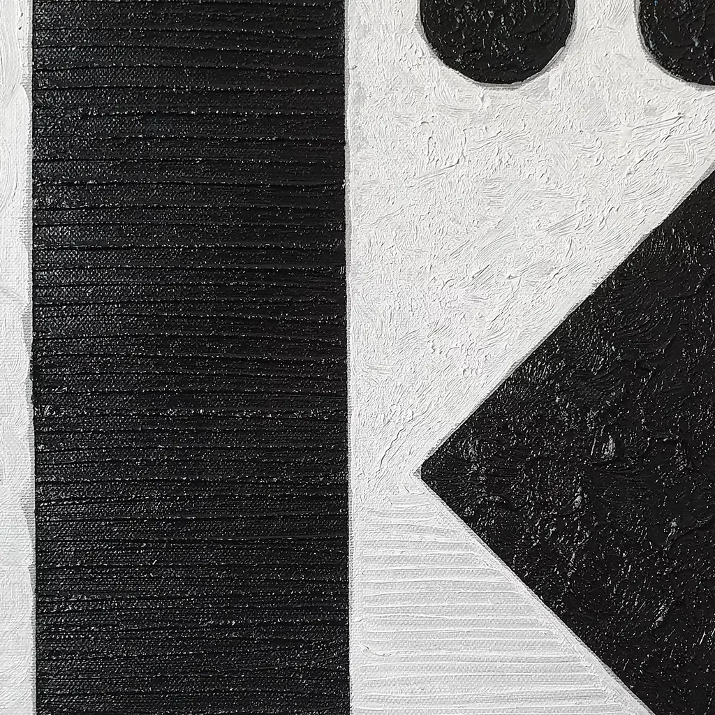 The Testa No.XVI is an abstract painting that delves into the intricate relationship between form and space. This unique piece serves as a profound exploration of equilibrium and tension, where geometric shapes transcend mere visual elements, embodying a language of abstraction that invites personal interpretation. The striking contrast of black and white enhances the dynamism of the composition, transforming the canvas into a visual field where order and chaos coexist harmoniously. Each viewing offers a moment of reflection, encouraging deeper contemplation and engagement with the myriad meanings this artwork can convey. The canvas is unframed.
