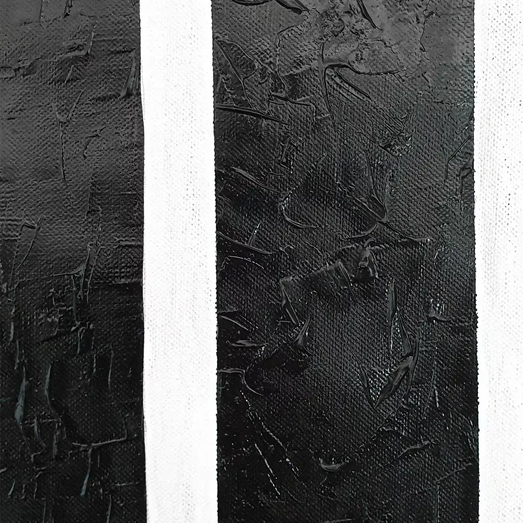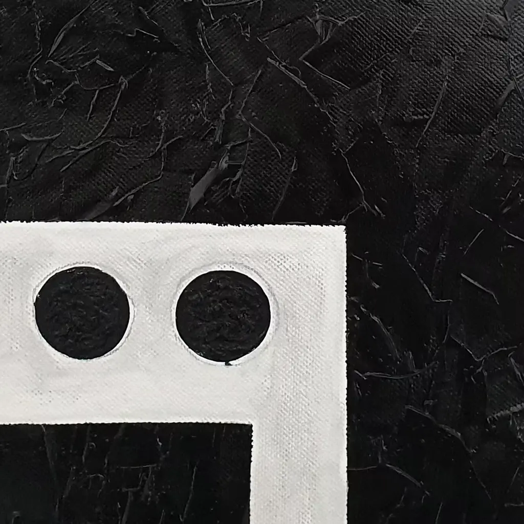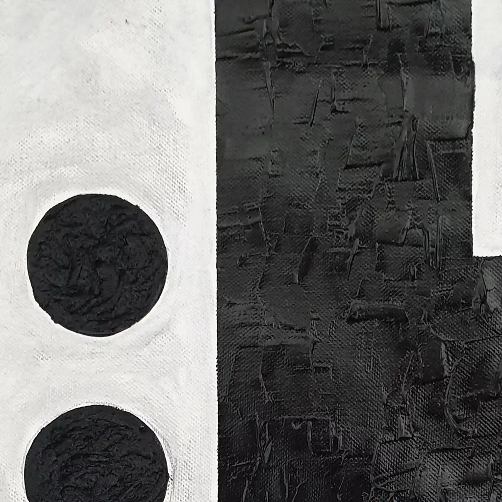 The Testa No.XXV is an abstract painting that delves into the intricate relationship between form and space. This unique piece serves as a profound exploration of equilibrium and tension, where geometric shapes transcend mere visual elements, embodying a language of abstraction that invites personal interpretation. The striking contrast of black and white enhances the dynamism of the composition, transforming the canvas into a visual field where order and chaos coexist harmoniously. Each viewing offers a moment of reflection, encouraging deeper contemplation and engagement with the myriad meanings this artwork can convey. The canvas is unframed.