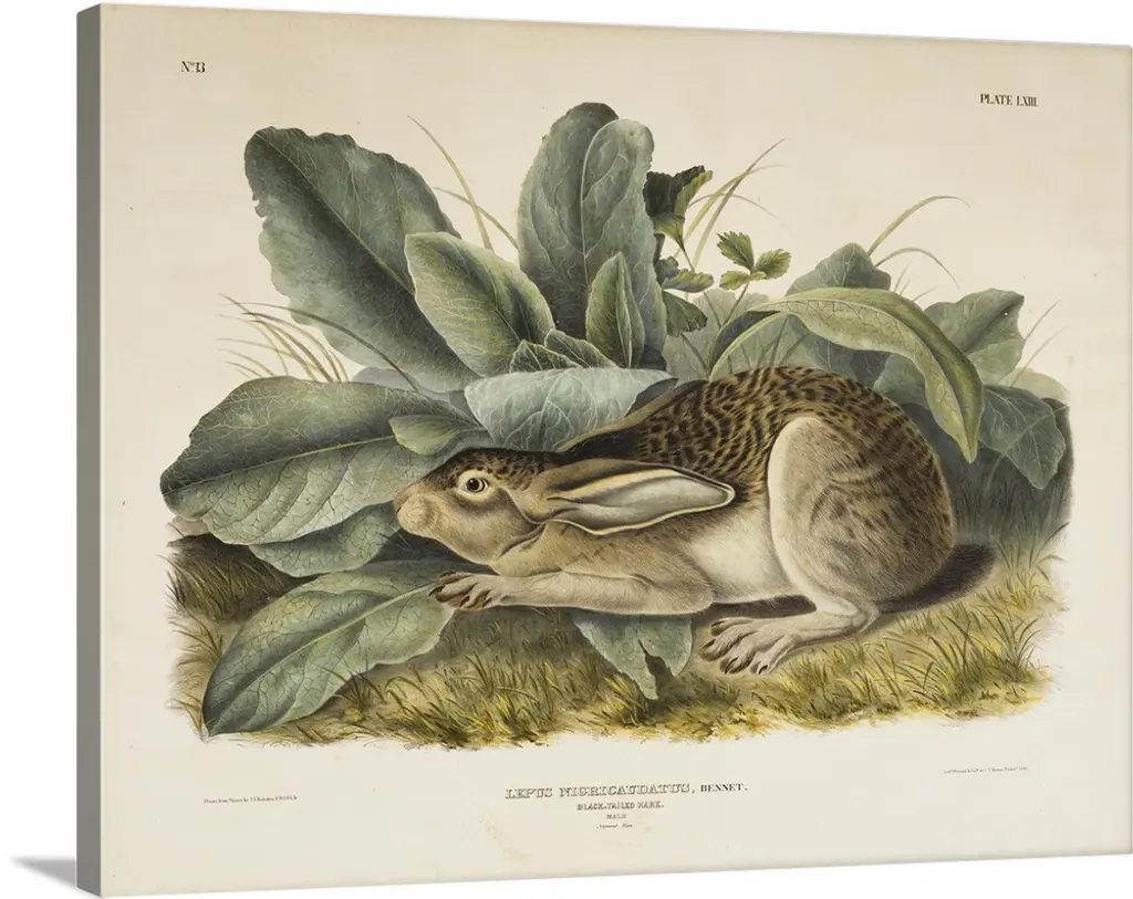 Texas jackrabbit (Lepus californicus texianus), a subspecies of the black-tailed jackrabbit, or California hare. Lithograph, c1854,after a painting by John Woodhouse Audubon for John James Audubon's 'Viviparous Quadrupeds of North America.'