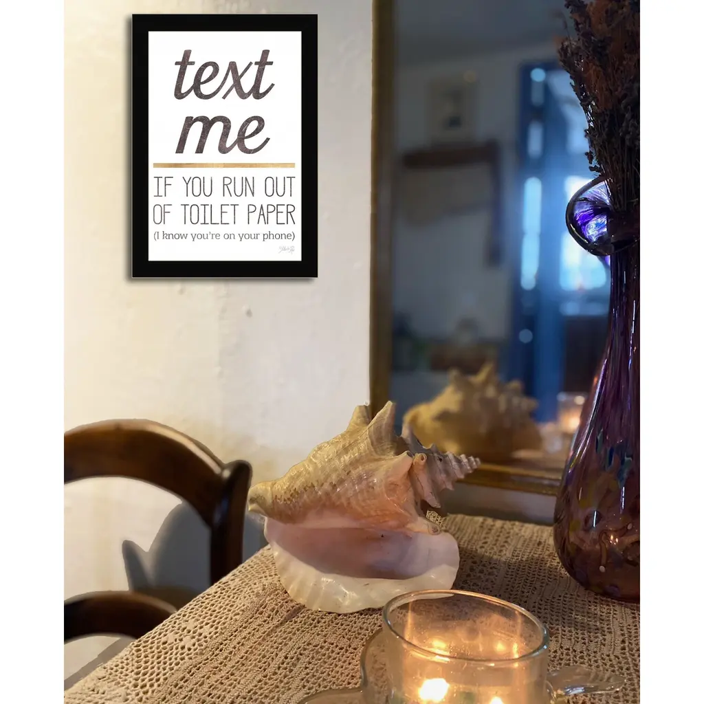 Text Me If You Run Out Of Toilet Paper 1 Black Framed Print Wall Art - Black