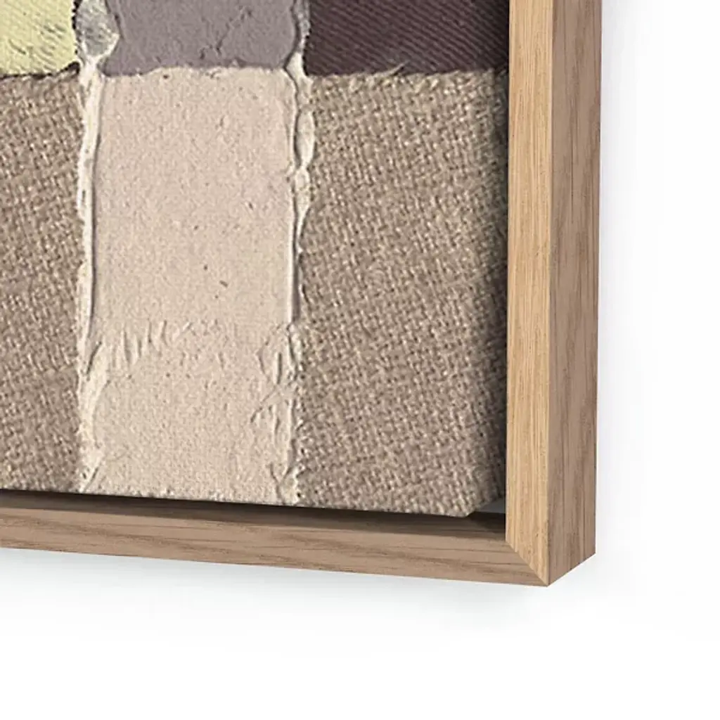 The Textile 1 Wall Art from Four Hands enriches your surroundings with abstract artistry. Masterfully crafted by Los Angeles artist Raoul Morren, who has expertise. Working in collage, painting, and photography, Morren draws inspiration from nature and travel, creating sense-focused pieces. The multi-textured design reuses found fragments, breathing new life into old materials and leaving his works able to be suspended in any direction. This piece is printed on premium archival matte paper, and float-mounted on canvas within a white oak frame, and is handmade in Austin, Texas, bringing an artistic emphasis to its surroundings.
