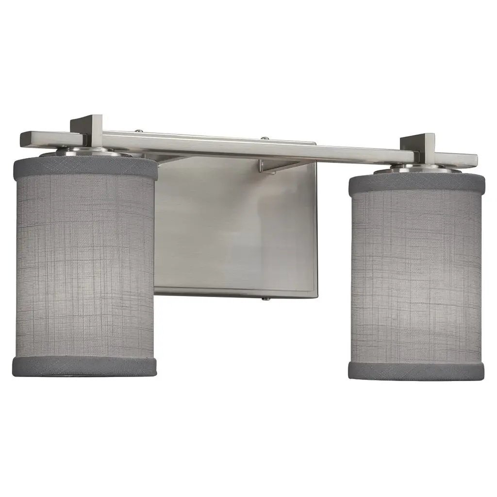 Textile Collection - Atlas 2-Light Bath Bar - Cylinder w/ Flat Rim Shade - Brushed Nickel - Gray