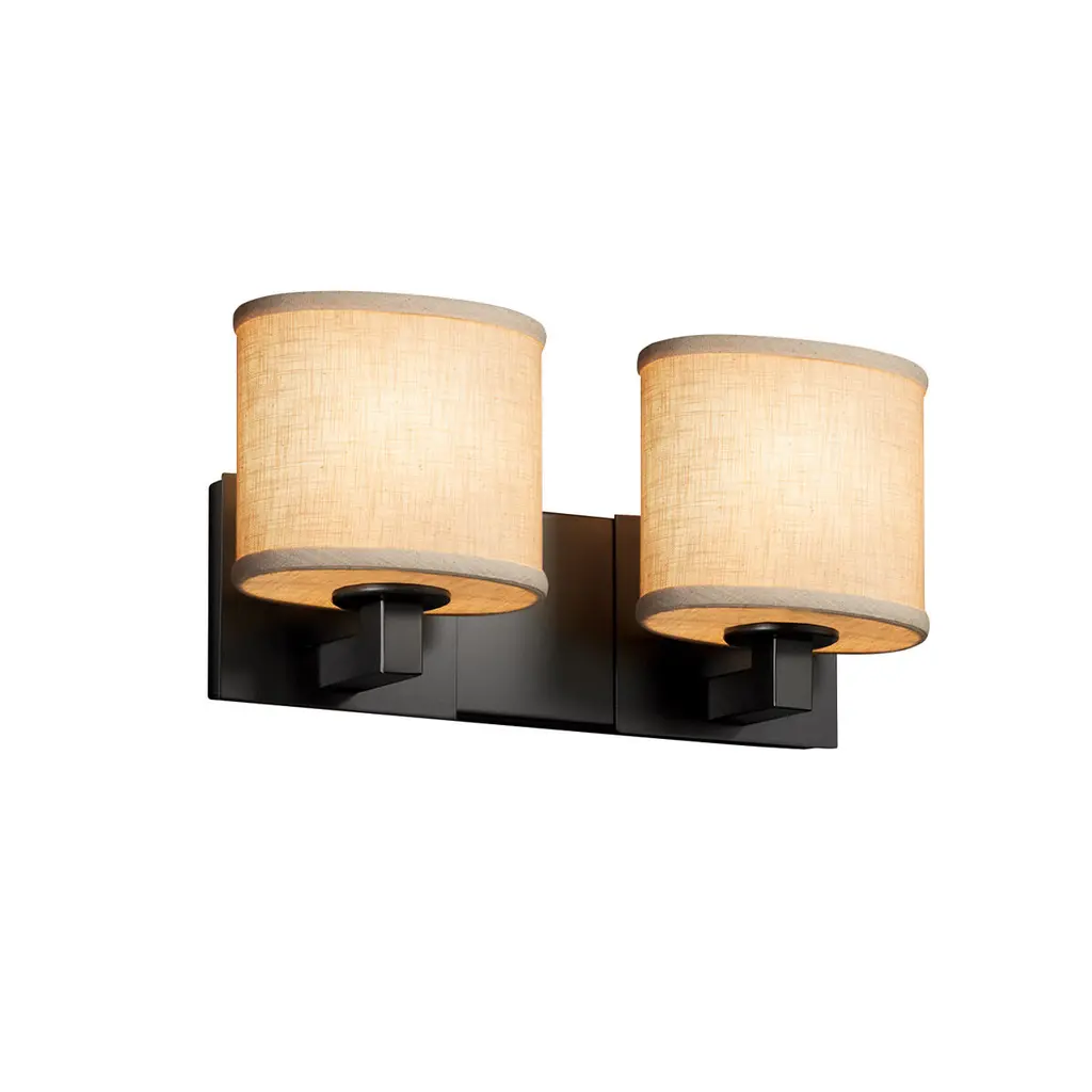 Textile - Modular 2-Light LED Bath Bar - Oval Shade - Cream - Antique Brass - Dedicated LED