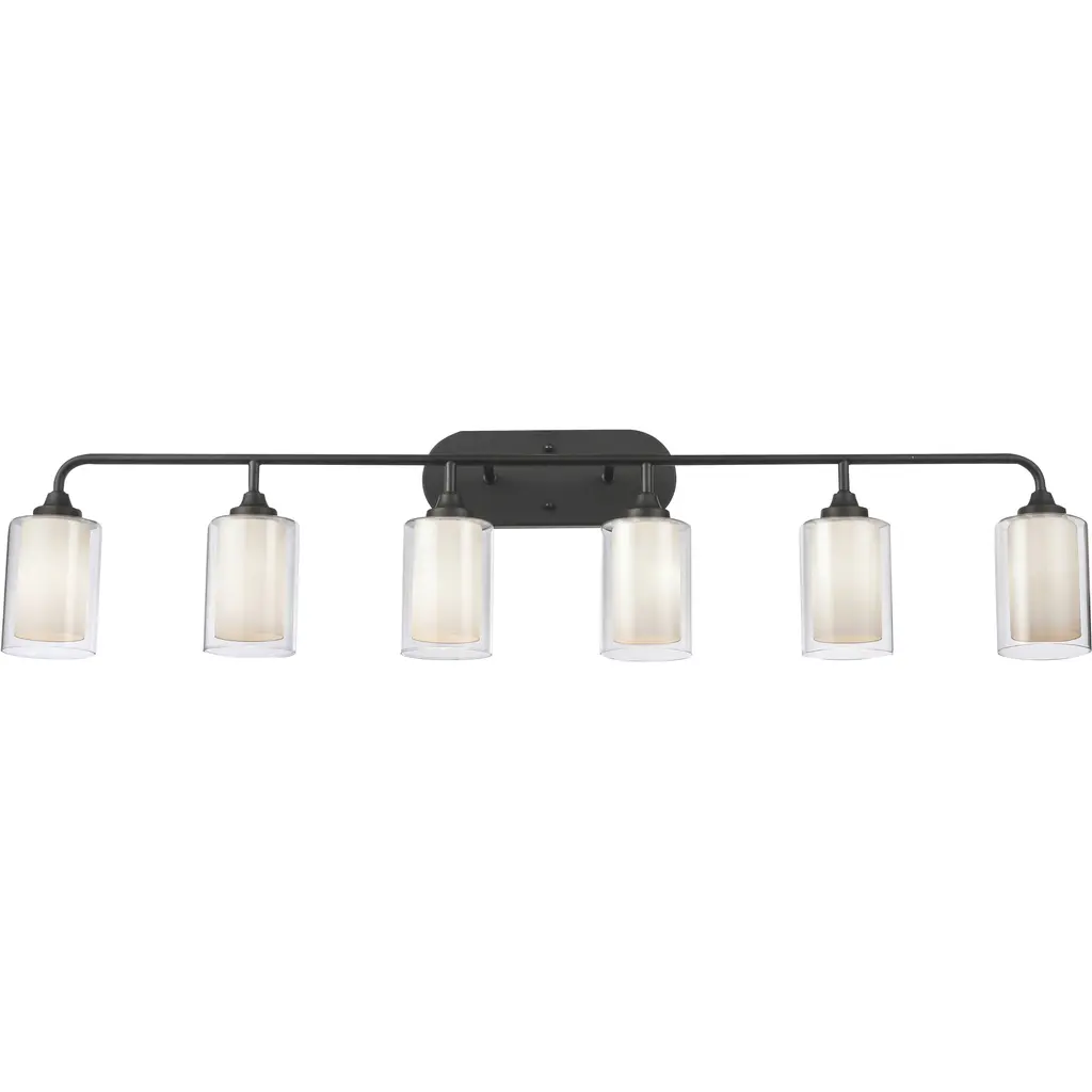 Textile - Dakota 6-Light LED Bath Bar - Cylinder w/ Flat Rim Shade - White - Brushed Nickel - Dedicated LED