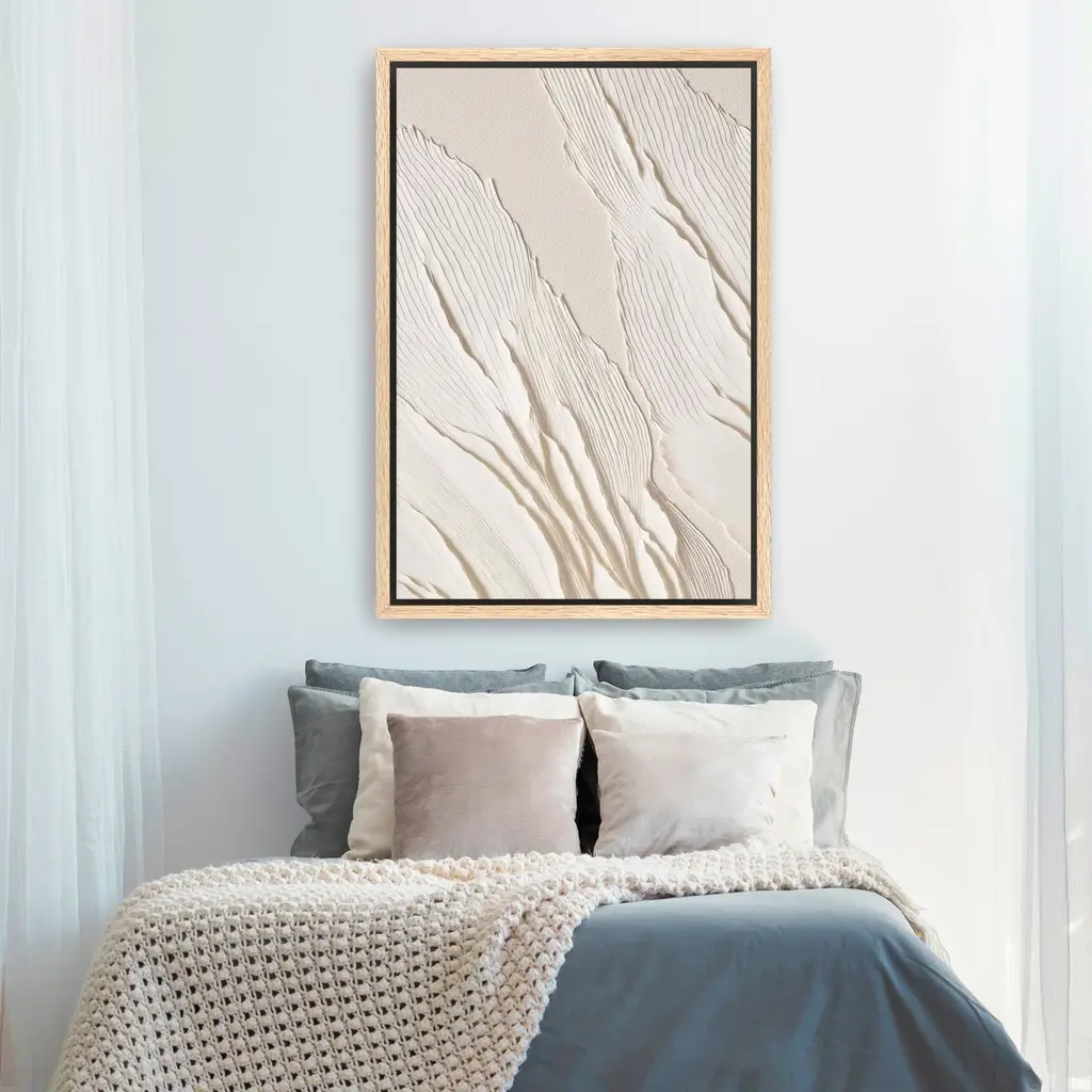 Introduce a touch of elegance to your space with this abstract beige canvas art print. Featuring a soothing palette of soft beige tones, this artwork creates a warm and inviting atmosphere, perfect for any room in your home.Available in black frame, dark walnut frame and oak frames, or as a frameless canvas. Our Gallery Wrap Canvas Prints are proudly assembled with high quality materials in California, USA. Each piece is printed on a thick, archival grade canvas using Giclee technology. It is then hand-stretched by our experienced artisans over solid pine bars, which will not warp over time. The final product is a piece personally crafted for you to confidently display on your wall. Care and Assembly: Ensure that the location of your piece has little to no exposure to heat, sunlight, and moisture. Wipe clean, only if needed. Each piece includes a sawtooth hanger to hang on your wall vertically.