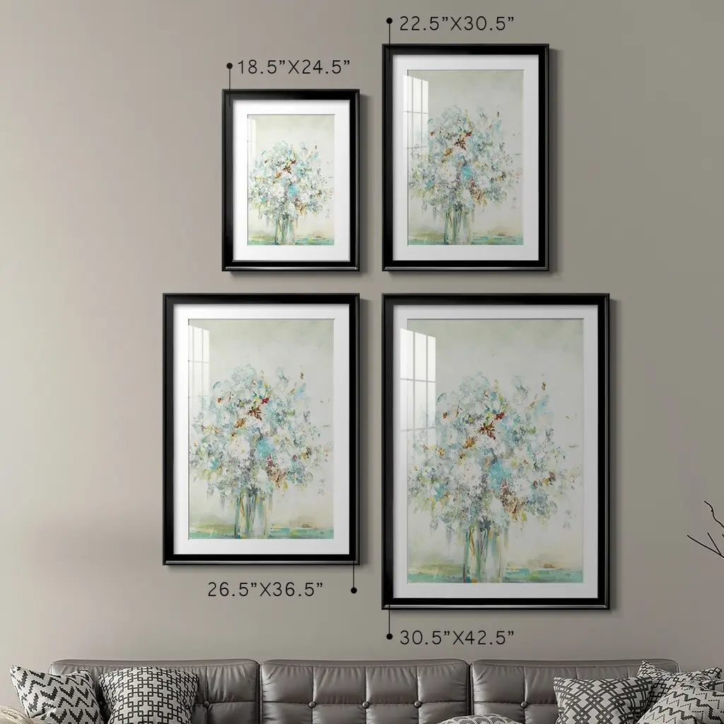 Textured Bouquet Premium Framed Print - Ready to Hang A Premium Framed Print created to last. Framed in distressed wood and available in an array of sizes and colors Featuring a beveled a solid wood stretcher bar, each piece comes ready to hand 4 SIZES AVAILABLE 30.5''X42.5'' - Overall Size 26.5'X36.5'' - Overall Size 22.5''x30.5'' - Overall Size 18.5''x24.5'' - Overall Size Each piece is made to order. Each piece comes with hanging hardware. Made in the USA Ready to Hang Giclee Paper Print Acrylic Glass Beveled Matt Board