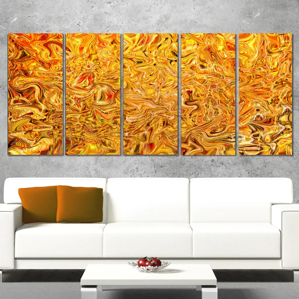 "Textured Flowing Yellow" Abstract Art Canvas Print, 5 Panels, 60"x28"