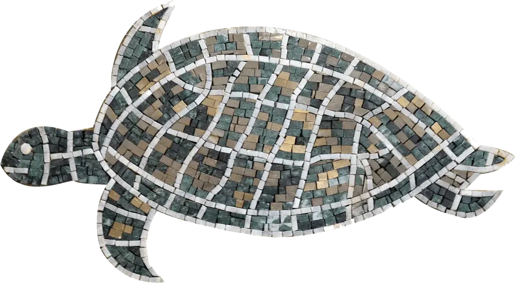 Experience the serene elegance of the Textured Turtle mosaic, a captivating tribute to the peaceful journey of a sea turtle in its ocean home. This exquisite luxury mosaic showcases subtle variations in tone and the meticulous placement of each tile, creating a stunning sense of calm and wonder. Crafted from premium natural stone, this handcrafted stone art piece celebrates the quiet beauty and majestic presence of these magnificent marine creatures. The radiant textures and delicate details invite you to immerse yourself in the luminous depths of the ocean, evoking both tranquility and admiration. Perfect for discerning collectors and connoisseurs of artisan mosaics, this premium quality work embodies the finest in natural stone artistry. Elevate your space with this dazzling, handcrafted mosaic that honors marine life with unparalleled sophistication. Discover the timeless allure and exquisite craftsmanship of this luxury mosaic and bring the captivating spirit of the sea turtle into your home.