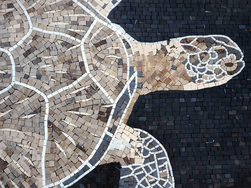 Experience the serene elegance of the Textured Turtle mosaic, a captivating tribute to the peaceful journey of a sea turtle in its ocean home. This exquisite luxury mosaic showcases subtle variations in tone and the meticulous placement of each tile, creating a stunning sense of calm and wonder. Crafted from premium natural stone, this handcrafted stone art piece celebrates the quiet beauty and majestic presence of these magnificent marine creatures. The radiant textures and delicate details invite you to immerse yourself in the luminous depths of the ocean, evoking both tranquility and admiration. Perfect for discerning collectors and connoisseurs of artisan mosaics, this premium quality work embodies the finest in natural stone artistry. Elevate your space with this dazzling, handcrafted mosaic that honors marine life with unparalleled sophistication. Discover the timeless allure and exquisite craftsmanship of this luxury mosaic and bring the captivating spirit of the sea turtle into your home.