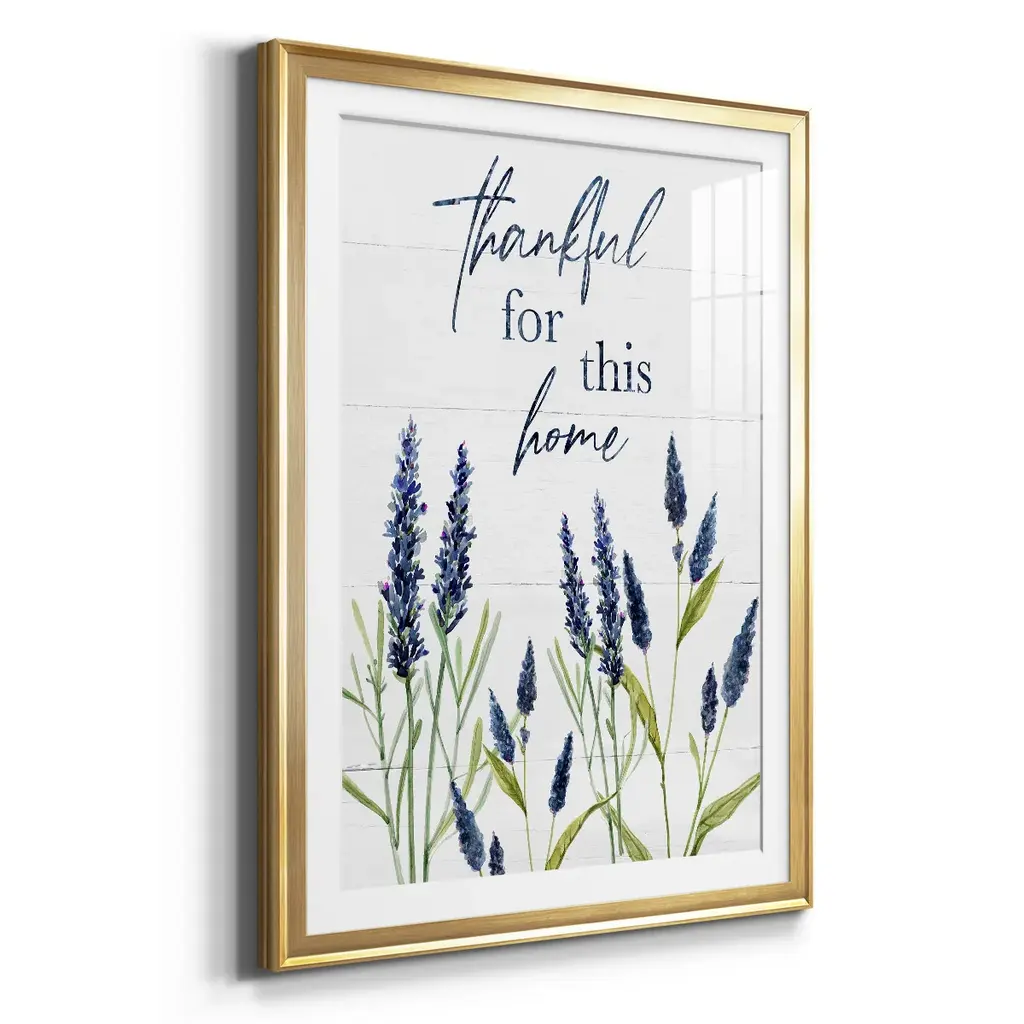 Thankful for this Home Premium Framed Print - Ready to Hang A Premium Framed Print created to last. Framed in distressed wood and available in an array of sizes and colors Featuring a beveled a solid wood stretcher bar, each piece comes ready to hand 4 SIZES AVAILABLE 30.5''X42.5'' - Overall Size 26.5'X36.5'' - Overall Size 22.5''x30.5'' - Overall Size 18.5''x24.5'' - Overall Size Each piece is made to order. Each piece comes with hanging hardware. Made in the USA Ready to Hang Giclee Paper Print Acrylic Glass Beveled Matt Board
