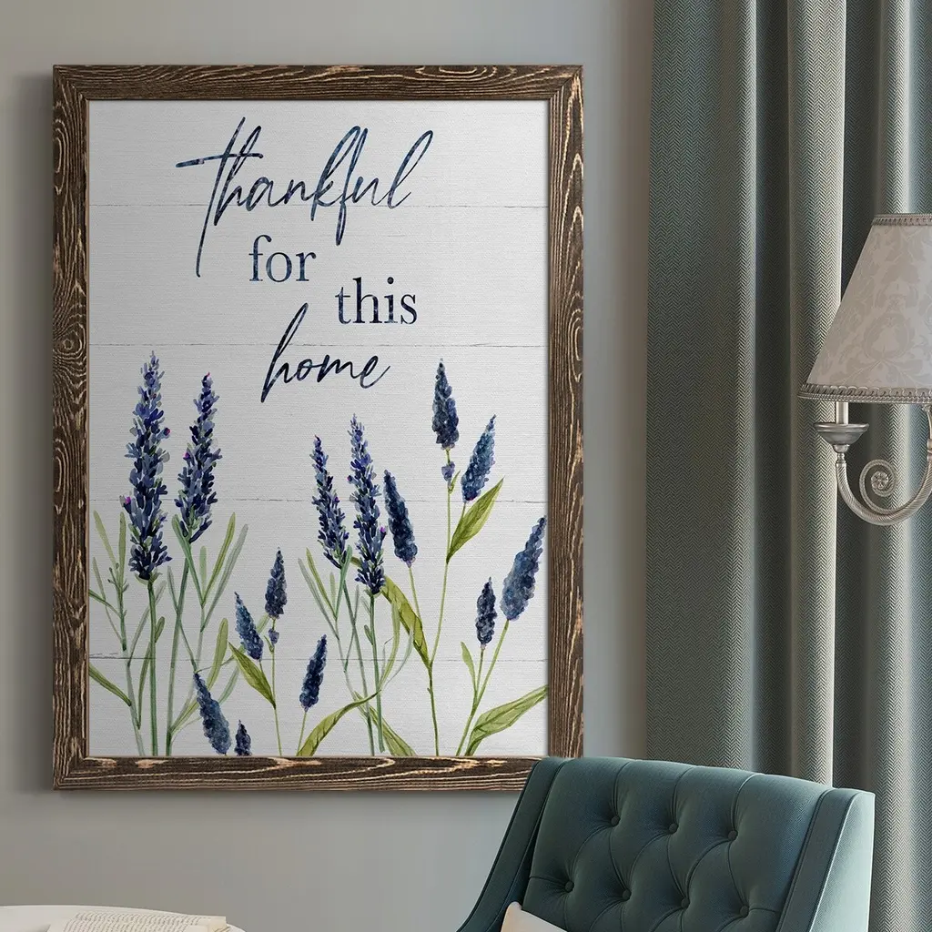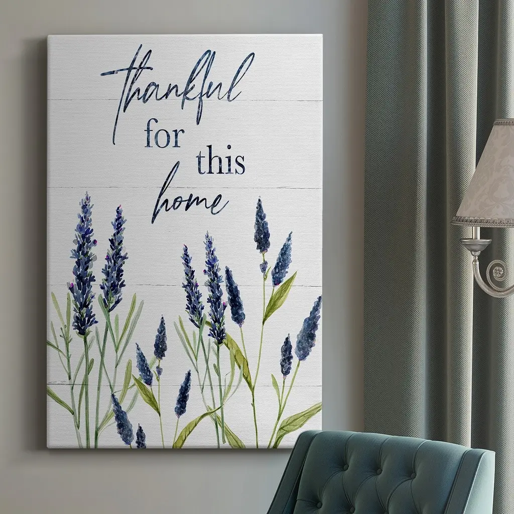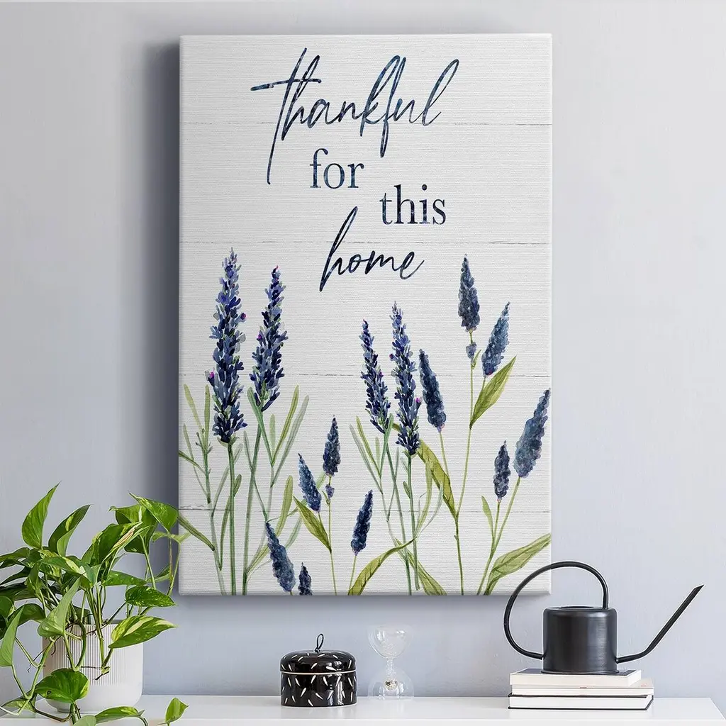 Thankful for this Home Premium Gallery Wrapped Canvas - Ready to Hang A premium hand stretched gallery wrapped canvas print created to last. Featuring a beveled a solid wood stretcher bar, each piece comes ready to hand 6 SIZES AVAILABLE 8''X12'' - Overall Size 12''X18'' - Overall Size 18''X27'' - Overall Size 24''x36'' - Overall Size 32''x48'' - Overall Size 40''x60'' - Overall Size Each piece is made to order. Built to Last Each piece comes ready to hang Solid wood stretcher Fade and Water resistant Made domestically